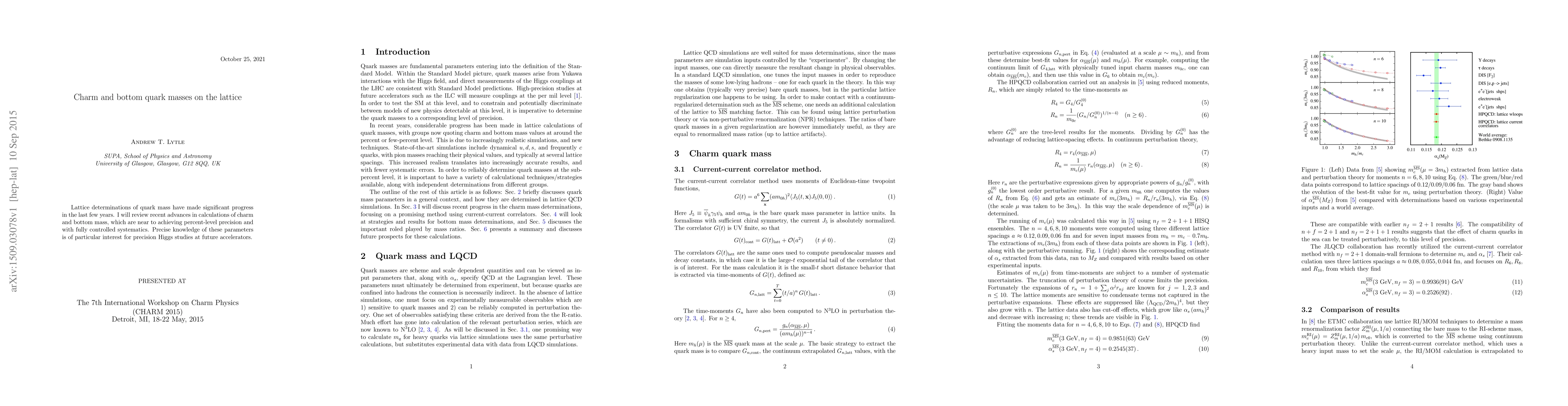 Recent lattice calculations have achieved near percent-level precision for charm and bottom quark masses, crucial for future Higgs studies at accelerators.