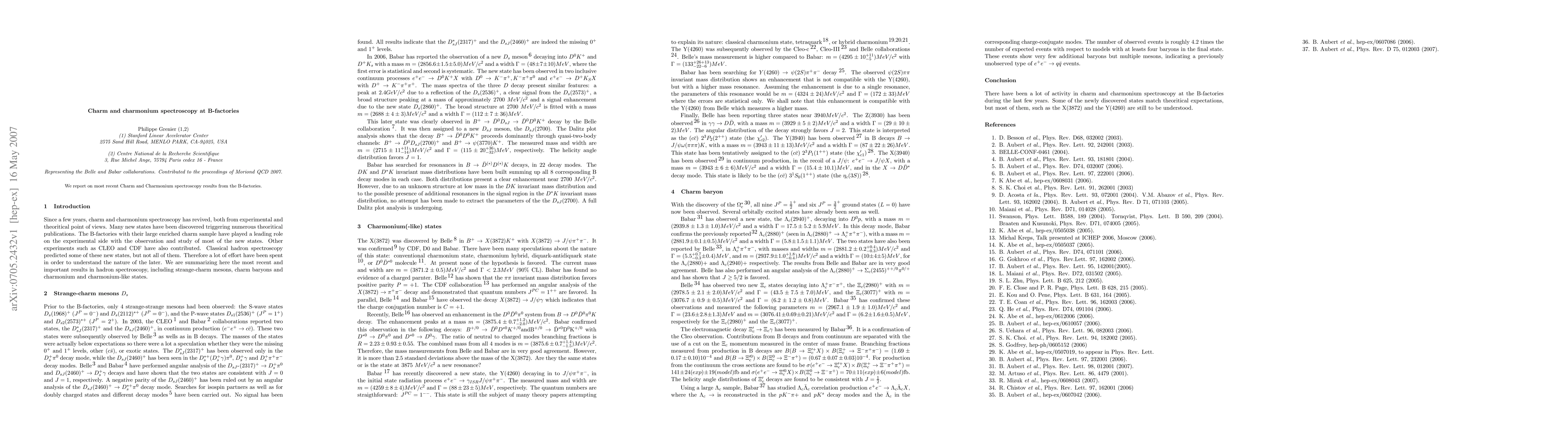 Summary: Recent findings from B-factories detail new insights into the properties of charm quarks and charmonium states, contributing to our understanding of their spectroscopy. These results provide valuable data for refining theoretical models in particle physics.