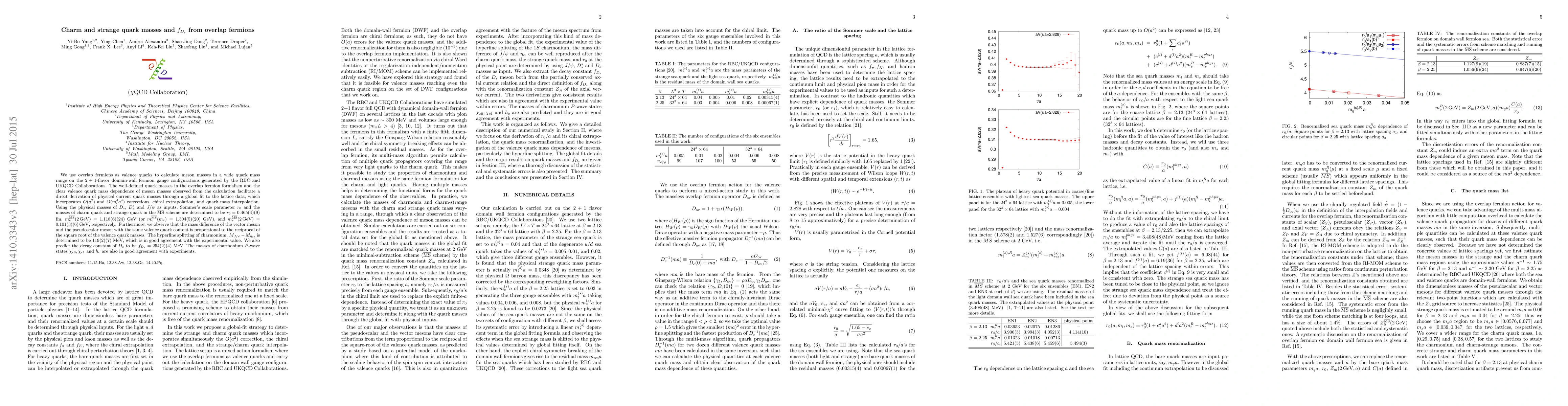 We use overlap fermions as valence quarks to calculate meson masses in a wide quark mass range on the $2+1$-flavor domain-wall fermion gauge configurations generated by the RBC and UKQCD Collaborations. The well-defined quark masses in the overlap fermion formalism and the clear valence quark mass dependence of meson masses observed from the calculation facilitate a direct derivation of physical current quark masses through a global fit to the lattice data, which incorporates $O(a^2)$ and $O(m_c^4a^4)$ corrections, chiral extrapolation, and quark mass interpolation. Using the physical masses of $D_s$, $D_s^*$ and $J/\psi$ as inputs, Sommer's scale parameter $r_0$ and the masses of charm quark and strange quark in the $\overline{\rm MS}$ scheme are determined to be $r_0=0.465(4)(9)$ fm, $m_c^{\overline{\rm MS}}(2\,{\rm GeV})=1.118(6)(24)$ GeV (or $m_c^{\overline{\rm MS}}(m_c)=1.304(5)(20)$ GeV), and $m_s^{\overline{\rm MS}}(2\,{\rm GeV})=0.101(3)(6)\,{\rm GeV}$, respectively. Furthermore, we observe that the mass difference of the vector meson and the pseudoscalar meson with the same valence quark content is proportional to the reciprocal of the square root of the valence quark masses. The hyperfine splitting of charmonium, $M_{J/\psi}-M_{\eta_c}$, is determined to be 119(2)(7) MeV, which is in good agreement with the experimental value. We also predict the decay constant of $D_s$ to be $f_{D_s}=254(2)(4)$ MeV. The masses of charmonium $P$-wave states $\chi_{c0}, \chi_{c1}$ and $h_c$ are also in good agreement with experiments.