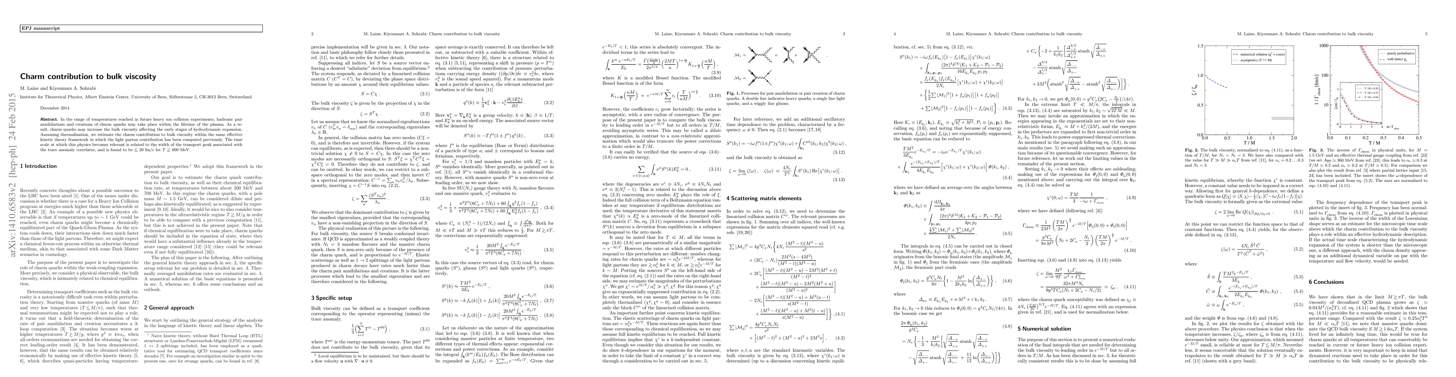 In the range of temperatures reached in future heavy ion collision experiments, hadronic pair annihilations and creations of charm quarks may take place within the lifetime of the plasma. As a result, charm quarks may increase the bulk viscosity affecting the early stages of hydrodynamic expansion. Assuming thermalization, we estimate the charm contribution to bulk viscosity within the same effective kinetic theory framework in which the light parton contribution has been computed previously. The time scale at which this physics becomes relevant is related to the width of the transport peak associated with the trace anomaly correlator, and is found to be < 20 fm/c for T > 600 MeV.