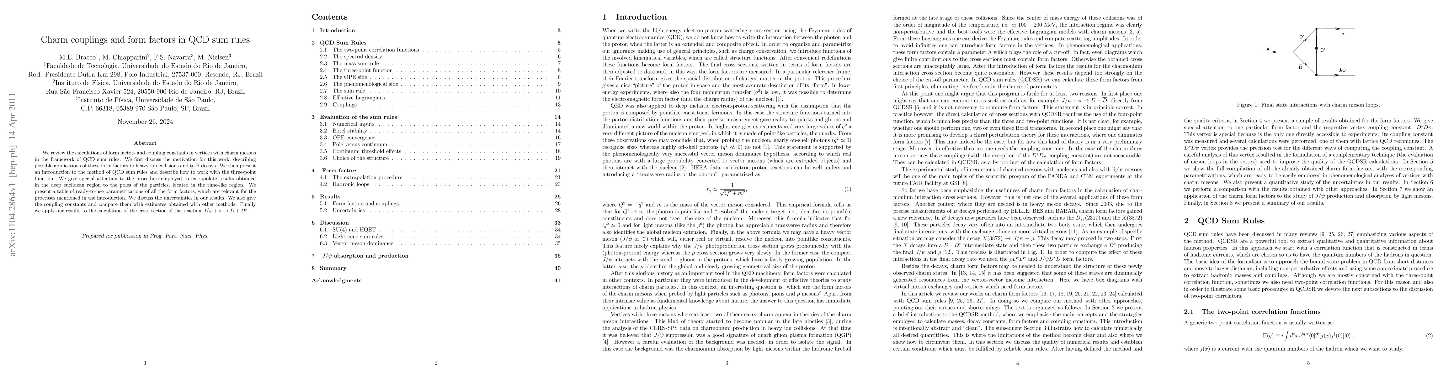 This paper reviews form factors and coupling constants in QCD sum rules for charm mesons, with applications to heavy ion collisions and B decays, and presents a table of parametrizations and comparison with other estimates.