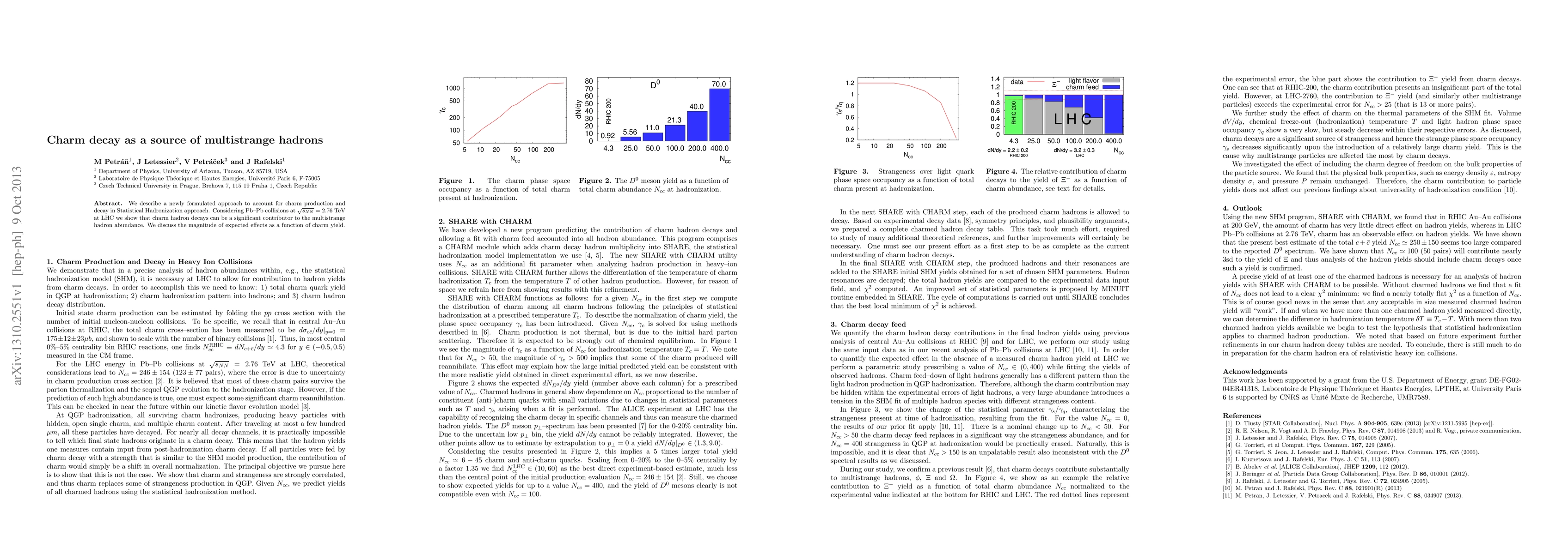 The paper introduces a new method to include charm production and decay in the Statistical Hadronization model. It demonstrates that charm hadron decays substantially contribute to multistrange hadron production in Pb--Pb collisions at LHC's 2.76 TeV, with effect magnitude depending on charm yield.