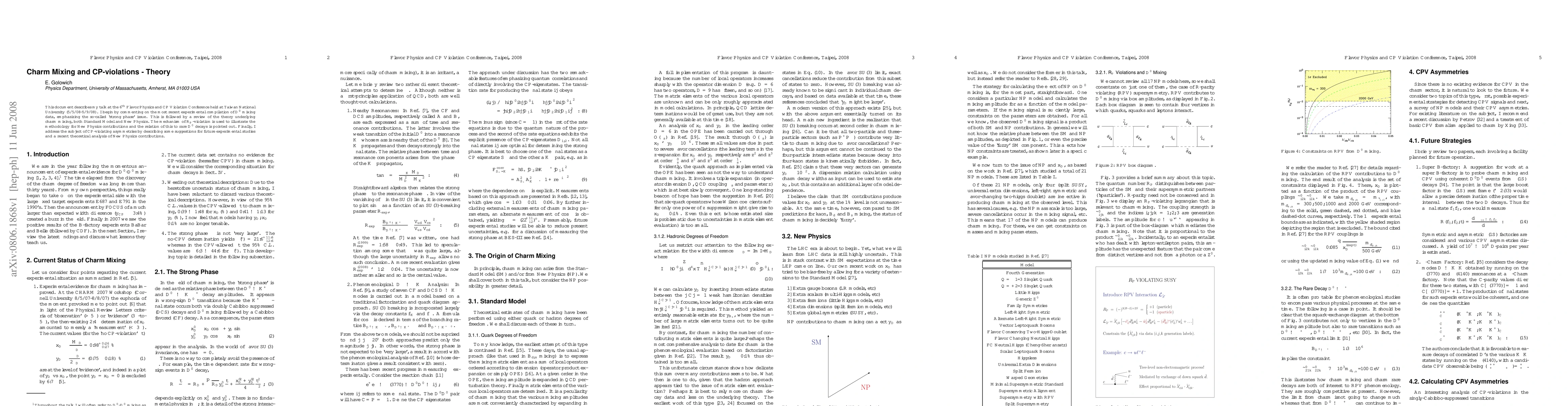 I begin by commenting on the most recent experimental compilation of D^0 mixing data, emphasizing the so-called 'strong phase' issue. This is followed by a review of the theory underlying charm mixing, both Standard Model and New Physics. The mechanism of R_p-violation is used to illustrate the methodology for New Physics contributions and the relation of this to rare D^0 decays is pointed out. Finally, I address the subject of CP-violating asymmetries by describing some suggestions for future experimental studies and a recent theoretical analysis of New Physics contributions.