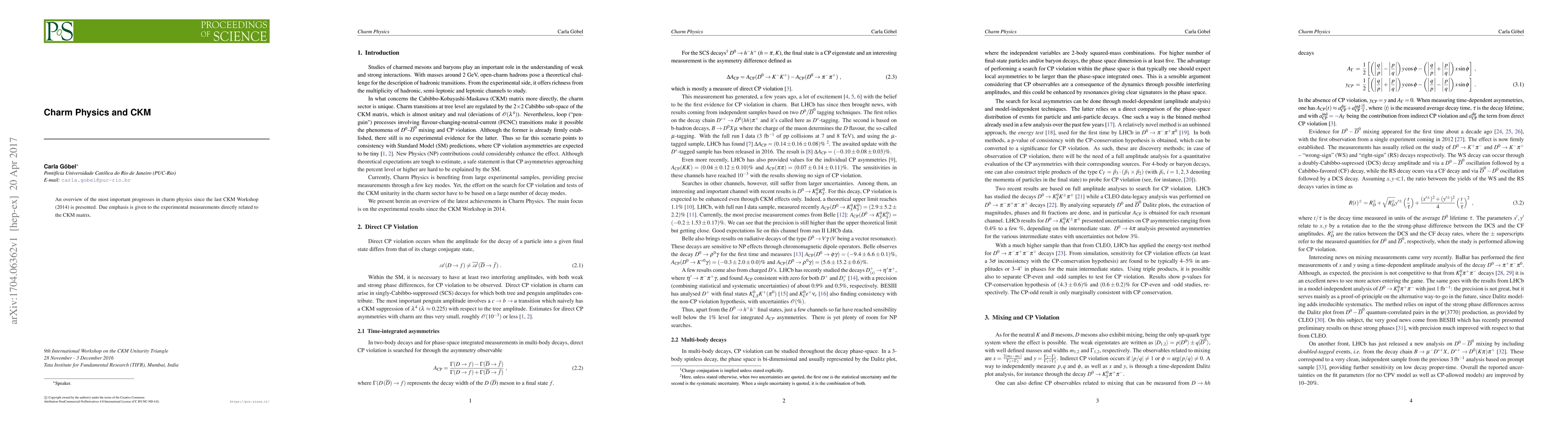 An overview of the most important progresses in charm physics since the last CKM Workshop (2014) is presented. Due emphasis is given to the experimental measurements directly related to the CKM matrix.