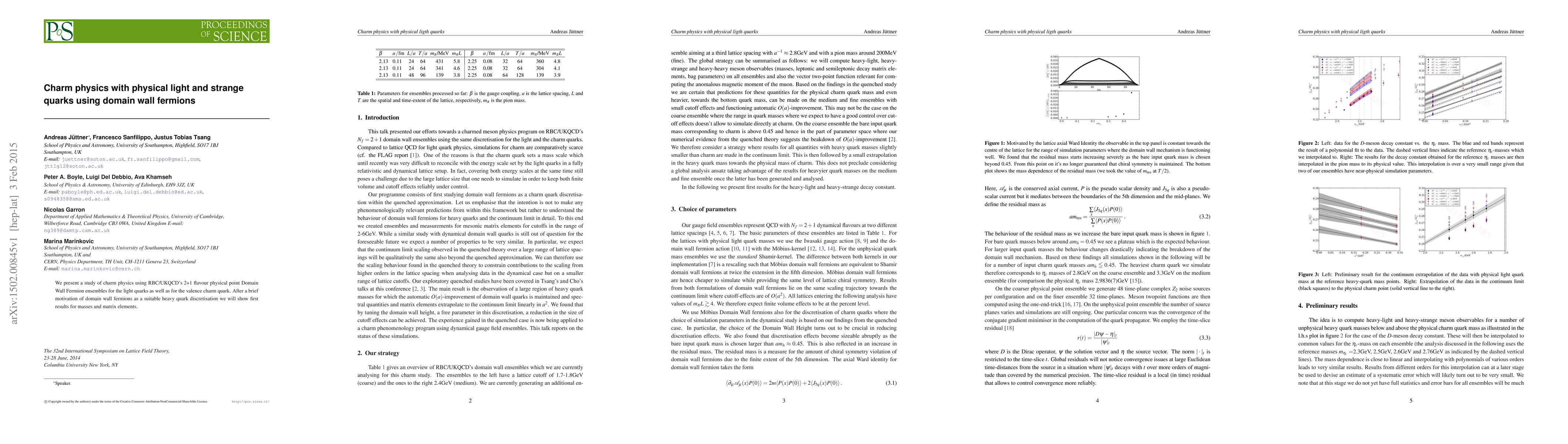 This study explores charm physics using domain wall fermions, a numerical method for simulating quarks in particle physics, and reports initial results on masses and interactions.