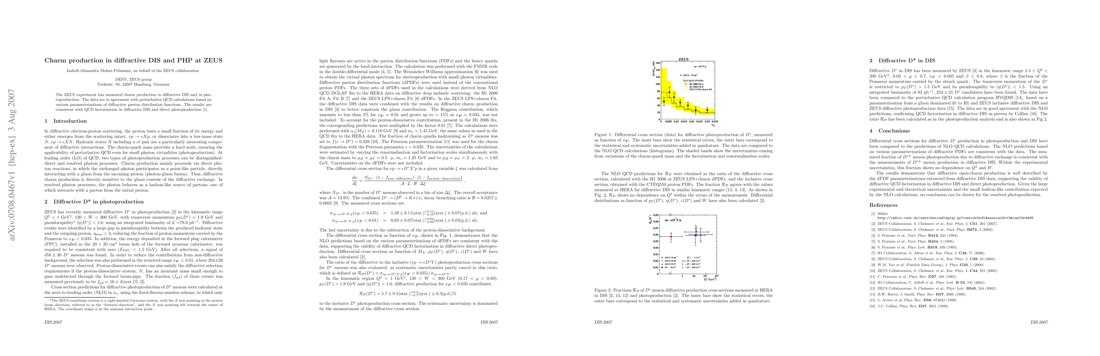 The ZEUS experiment reports charm production measurements in diffractive deep inelastic scattering (DIS) and photoproduction, which align with perturbative QCD predictions using different parameterizations of diffractive parton distribution functions. The findings support QCD factorization in both diffractive DIS and direct photoproduction.