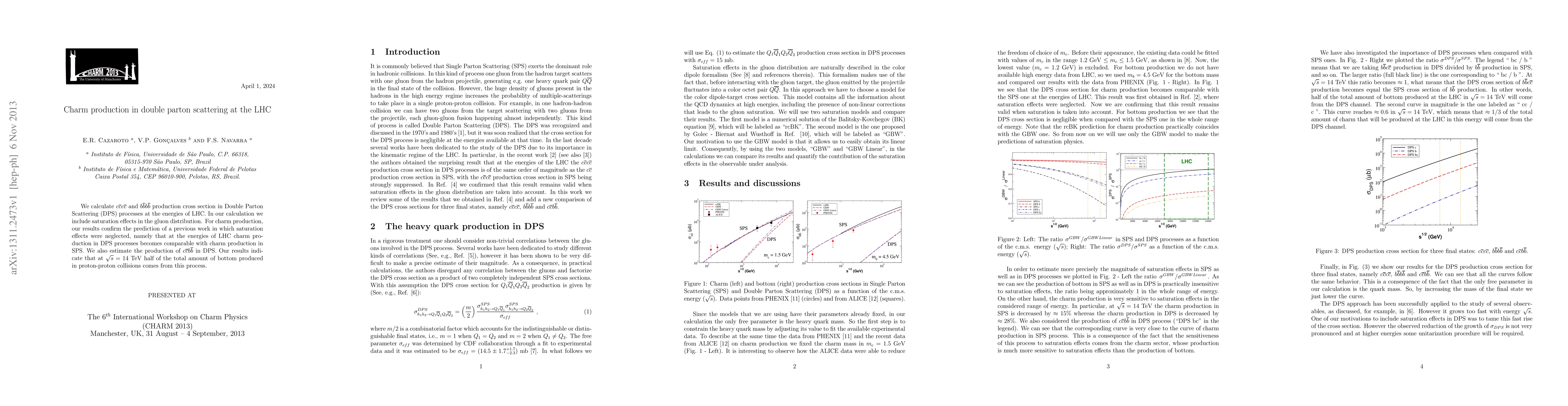 This paper calculates the production cross sections for charm and bottom quarks in Double Parton Scattering (DPS) at the LHC, including saturation effects in gluon distribution. It confirms that charm production in DPS is comparable to single parton scattering (SPS) at LHC energies and estimates that half of the bottom quarks produced in proton-proton collisions at 14 TeV come from DPS.