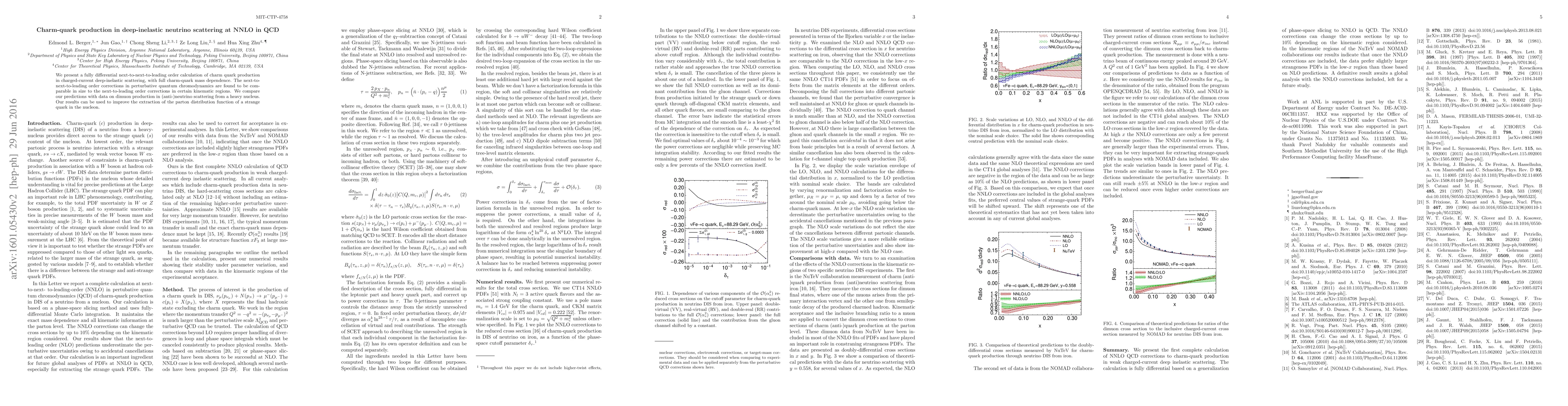This paper presents a next-to-next-to-leading order calculation for charm-quark production in deep-inelastic neutrino scattering, highlighting the significance of these corrections in specific kinematic regions. The findings are compared with experimental data and aim to enhance the determination of the strange quark parton distribution function.