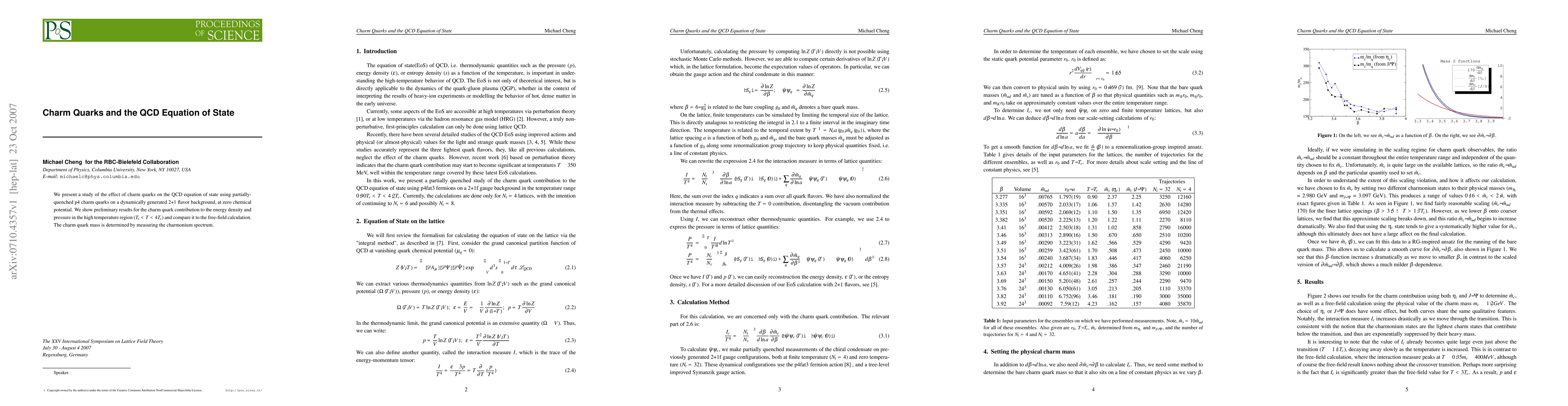 This study investigates the impact of charm quarks on the QCD equation of state in the high-temperature region, finding their contribution to energy density and pressure, and compares these results to free-field calculations, with the charm quark mass derived from the charmonium spectrum.