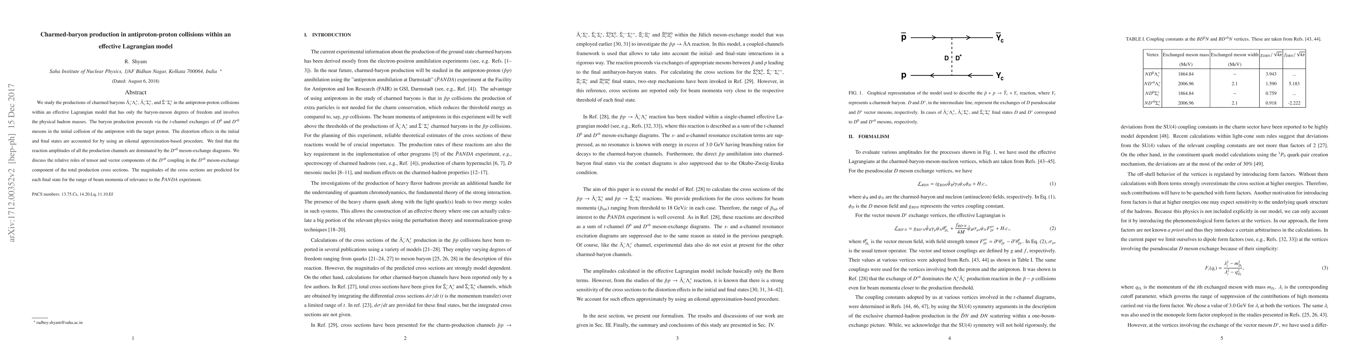 This paper predicts the production of charmed baryons in antiproton-proton collisions using an effective Lagrangian model, finding that $D^{*0}$ meson-exchange diagrams dominate the reaction amplitudes.