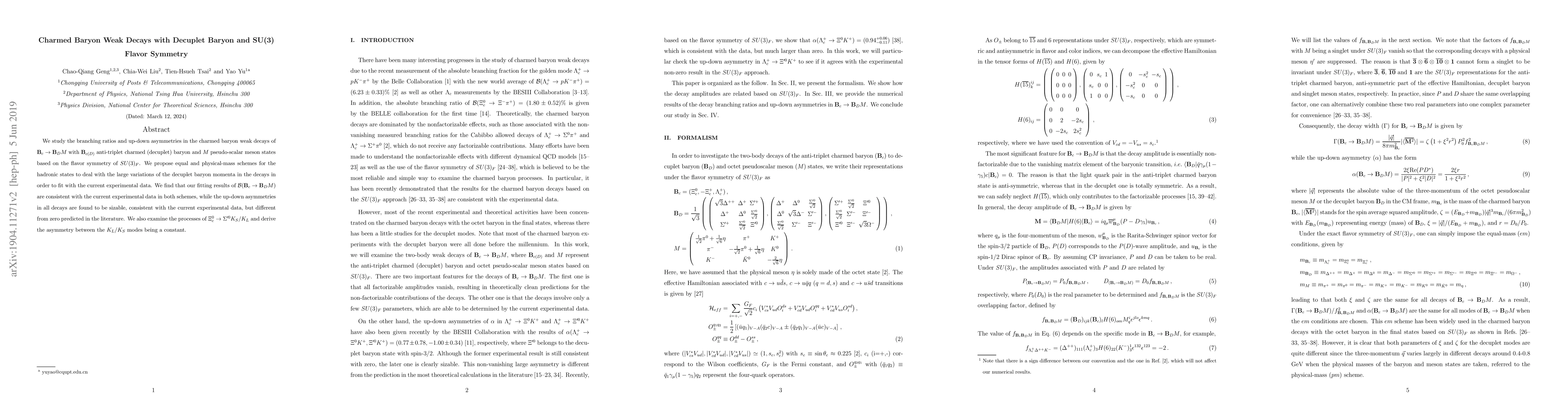 This paper investigates the branching ratios and up-down asymmetries in charmed baryon weak decays, specifically ${\bf B}_c\to {\bf B}_DM$, using $SU(3)_F$ flavor symmetry. The results show consistency with experimental data and reveal sizable up-down asymmetries, differing from zero predictions in previous literature.