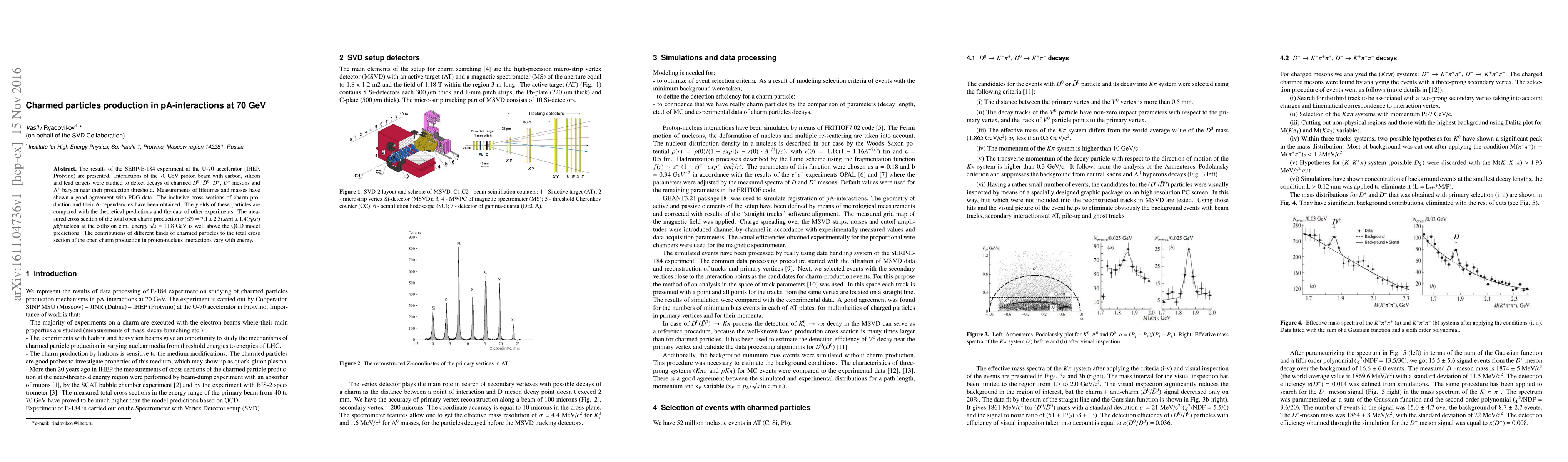 The results of the SERP-E-184 experiment at the U-70 accelerator (IHEP, Protvino) are presented. Interactions of the 70 GeV proton beam with carbon, silicon and lead targets were studied to detect decays of charmed $D^0$, $\bar D^0$, $D^+$, $D^-$ mesons and $\Lambda_c^+$ baryon near their production threshold. Measurements of lifetimes and masses have shown a good agreement with PDG data. The inclusive cross sections of charm production and their A-dependencies have been obtained. The yields of these particles are compared with the theoretical predictions and the data of other experiments. The measured cross section of the total open charm production $\sigma(c\bar c) = 7.1 \pm 2.3(stat) \pm 1.4(syst)$ $\mu$b/nucleon at the collision c.m. energy $\surd s$ = 11.8 GeV is well above the QCD model predictions. The contributions of different kinds of charmed particles to the total cross section of the open charm production in proton-nucleus interactions vary with energy.