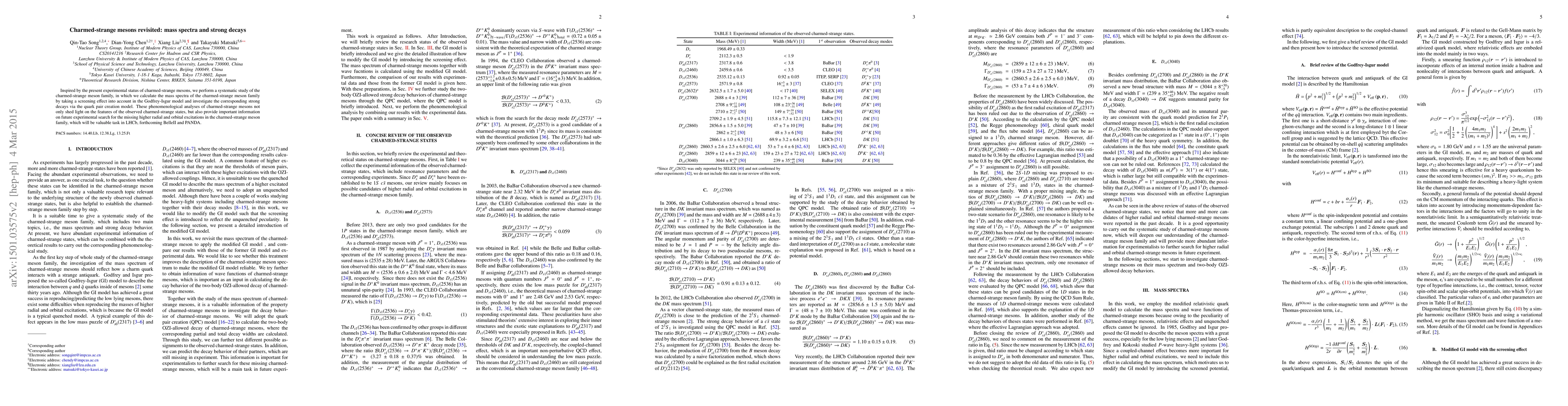 This paper systematically studies the mass spectra and strong decays of charmed-strange mesons using the Godfrey-Isgur model, incorporating screening effects, and the quark pair creation model. The findings offer insights into observed states and guide future experimental searches at LHCb, BelleII, and PANDA.