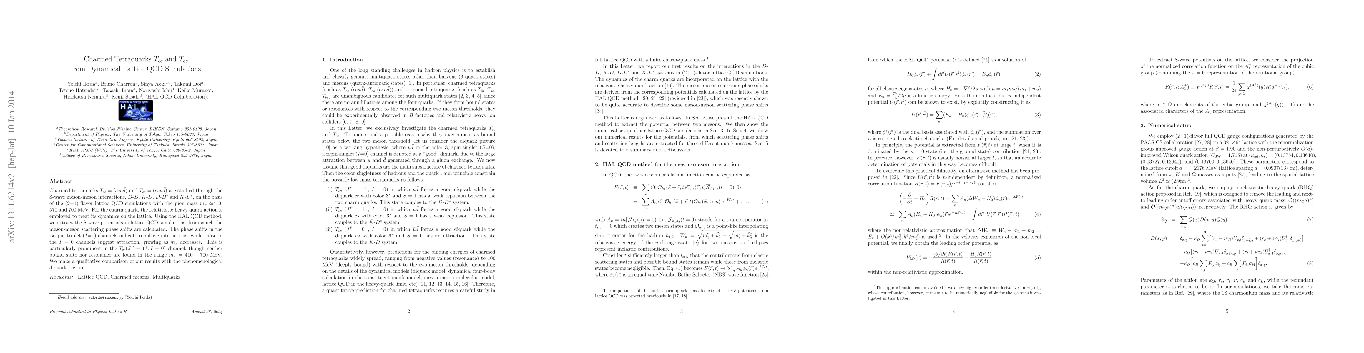 Charmed tetraquarks $T_{cc}=(cc\bar{u}\bar{d})$ and $T_{cs}=(cs\bar{u}\bar{d})$ are studied through the S-wave meson-meson interactions, $D$-$D$, $\bar{K}$-$D$, $D$-$D^{*}$ and $\bar{K}$-$D^{*}$, on the basis of the (2+1)-flavor lattice QCD simulations with the pion mass $m_{\pi} \simeq $410, 570 and 700 MeV. For the charm quark, the relativistic heavy quark action is employed to treat its dynamics on the lattice. Using the HAL QCD method, we extract the S-wave potentials in lattice QCD simulations, from which the meson-meson scattering phase shifts are calculated. The phase shifts in the isospin triplet ($I$=1) channels indicate repulsive interactions, while those in the $I=0$ channels suggest attraction, growing as $m_{\pi}$ decreases. This is particularly prominent in the $T_{cc} (J^P=1^+,I=0)$ channel, though neither bound state nor resonance are found in the range $m_{\pi} =410-700$ MeV. We make a qualitative comparison of our results with the phenomenological diquark picture.