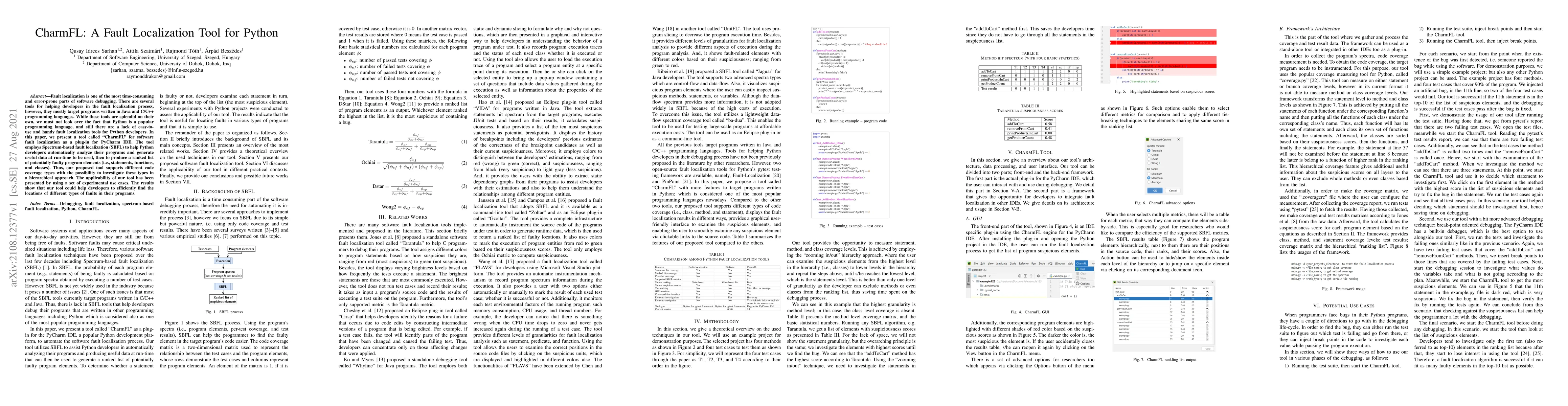 CharmFL is a new fault localization tool for Python, designed as a PyCharm plug-in that uses Spectrum-based fault localization (SBFL) to help developers identify and fix faults by ranking potentially faulty program elements. Experimental results indicate its effectiveness in aiding Python developers in debugging.