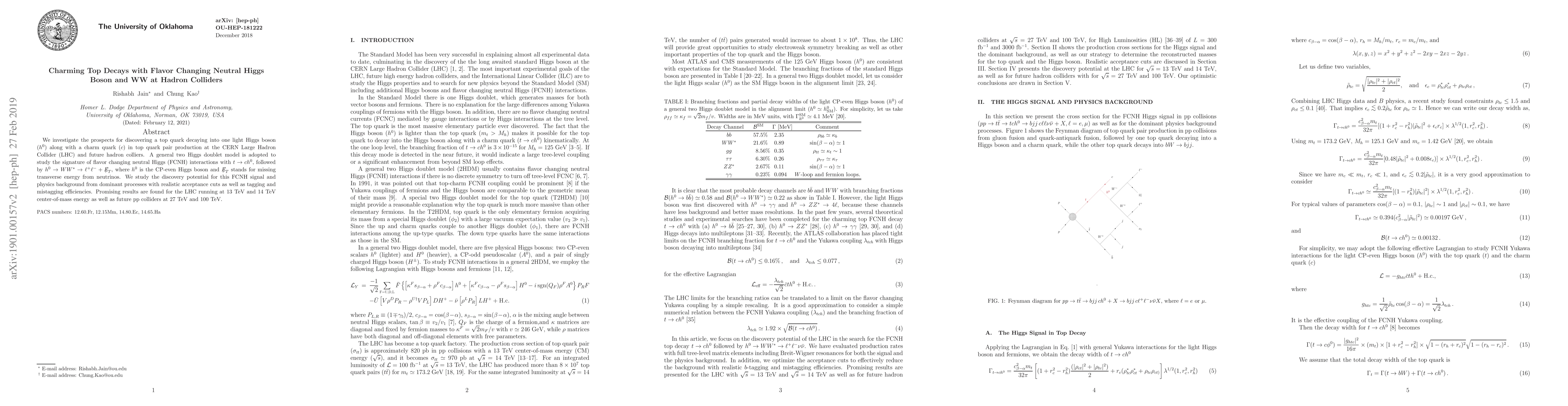 This paper explores the potential for discovering a top quark decaying into a light Higgs boson and a charm quark at the LHC and future hadron colliders, focusing on flavor-changing neutral Higgs interactions. Promising discovery prospects are found for the LHC at 13-14 TeV and future colliders at 27-100 TeV.