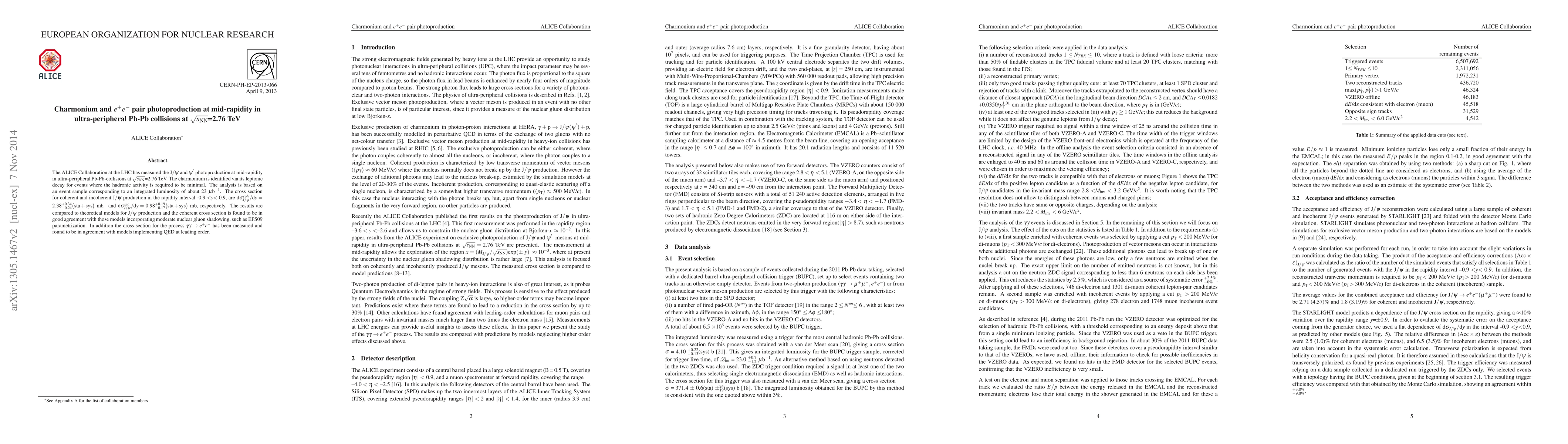 $\sqrt{s_{\rm NN}}=2.76$ TeV. The charmonium is identified via its leptonic