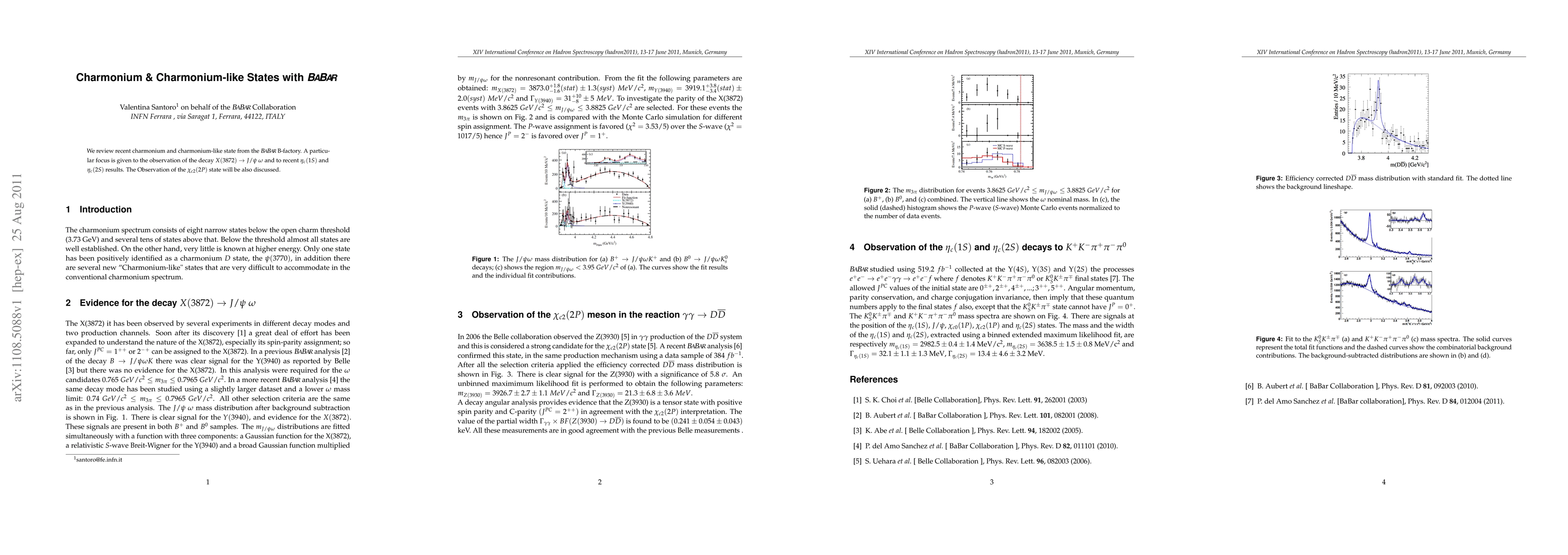 We review recent charmonium and charmonium-like state from the BaBar B-factory. A particular focus is given to the observation of the decay $X(3872) \to J/\psi \omega$ and to recent $\eta_{c}(1S)$ and $\eta_{c}(2S)$ results. The Observation of the $\chi_{c2}(2P)$ state will be also discussed