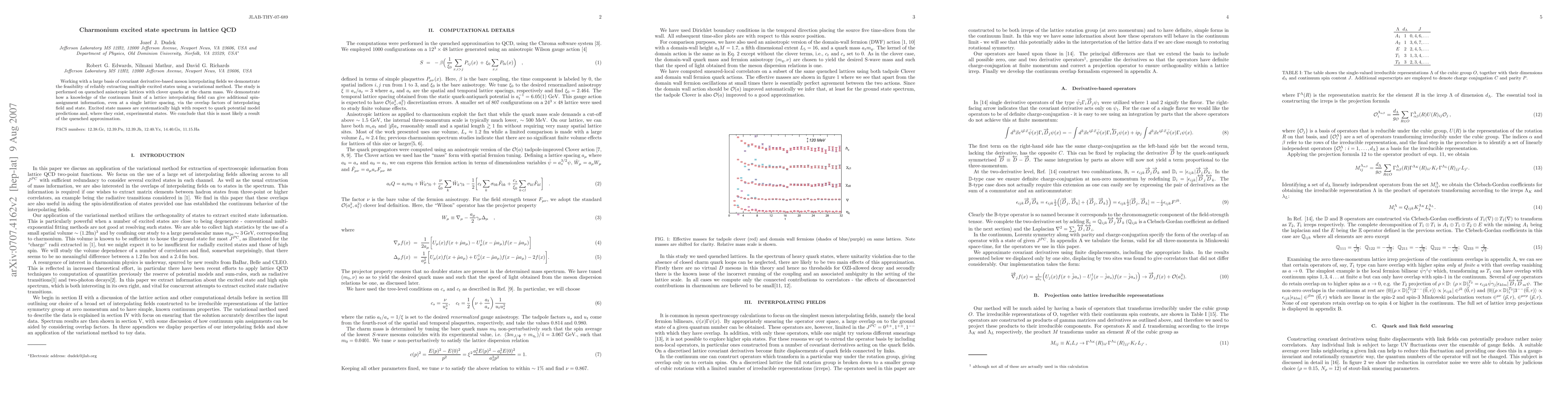 Working with a large basis of covariant derivative-based meson interpolating fields we demonstrate the feasibility of reliably extracting multiple excited states using a variational method. The study is performed on quenched anisotropic lattices with clover quarks at the charm mass. We demonstrate how a knowledge of the continuum limit of a lattice interpolating field can give additional spin-assignment information, even at a single lattice spacing, via the overlap factors of interpolating field and state. Excited state masses are systematically high with respect to quark potential model predictions and, where they exist, experimental states. We conclude that this is most likely a result of the quenched approximation.