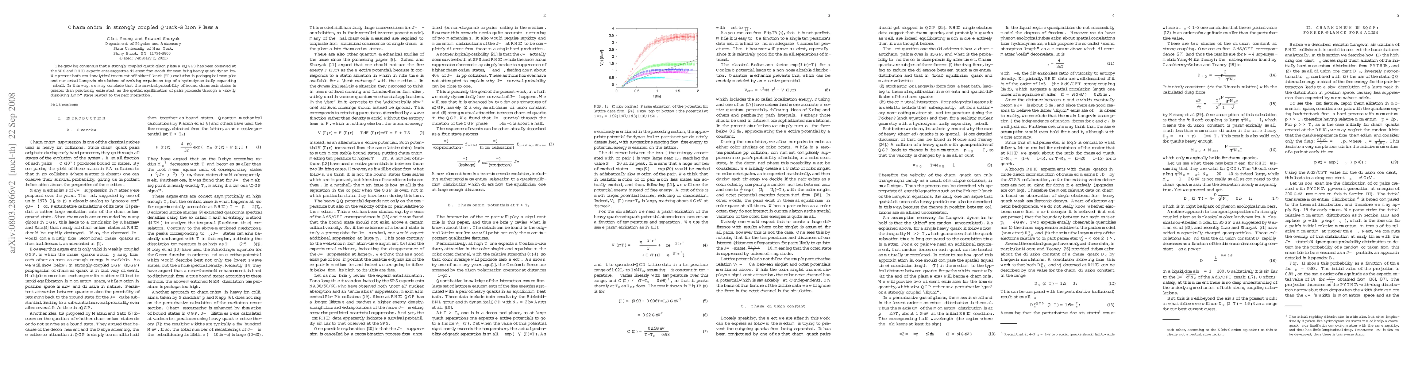The growing consensus that a strongly-coupled quark-gluon plasma (sQGP) has been observed at the SPS and RHIC experiments suggests a different framework for examining heavy quark dynamics. We present both semi-analytical treatment of Fokker-Planck (FP) evolution in pedagogical examples and numerical Langevin simulations of evolving charm quark-antiquark pairs on top of a hydrodynamically expanding fireball. In this way, we may conclude that the survival probability of bound charmonia states is greater than previously estimated, as the spatial equilibration of pairs proceeds through a ``slowly dissolving lump'' stage related to the pair interaction.
