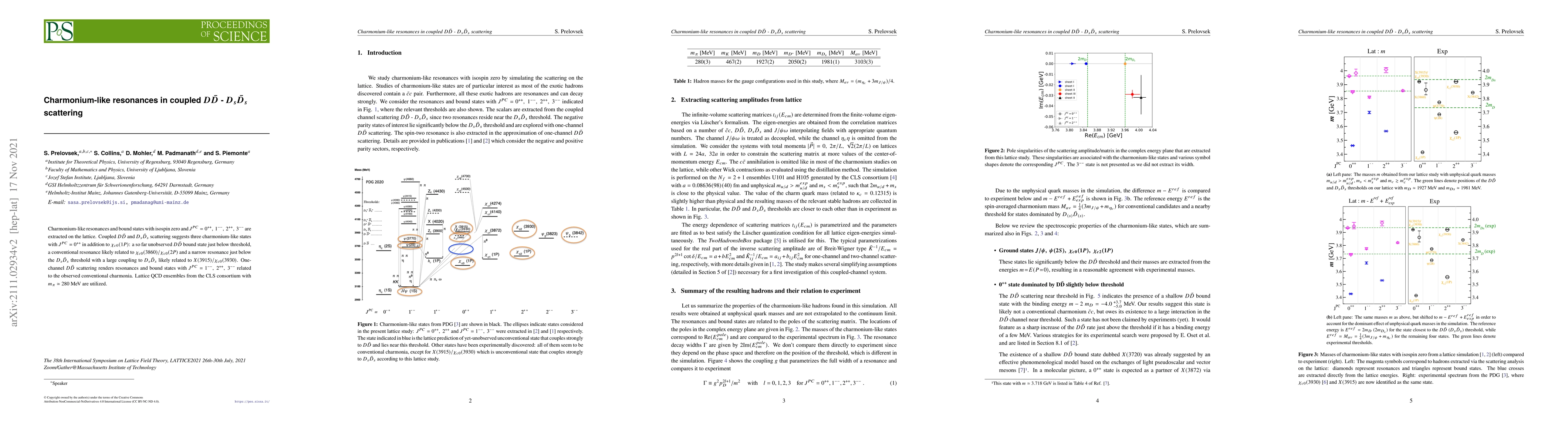 Charmonium-like resonances and bound states with isospin zero and $J^{PC}=0^{++},~1^{--},~2^{++},~3^{--}$ are extracted on the lattice. Coupled $D\bar D$ and $D_s\bar D_s$ scattering suggests three charmonium-like states with $J^{PC}=0^{++}$ in addition to $\chi_{c0}(1P)$: a so far unobserved $D\bar D$ bound state just below threshold, a conventional resonance likely related to $\chi_{c0}(3860)/\chi_{c0}(2P)$ and a narrow resonance just below the $D_s\bar D_s$ threshold with a large coupling to $D_s\bar D_s$ likely related to $X(3915)/\chi_{c0}(3930)$. One-channel $D\bar D$ scattering renders resonances and bound states with $J^{PC}= 1^{--},~2^{++},~3^{--}$ related to the observed conventional charmonia. Lattice QCD ensembles from the CLS consortium with $m_{\pi}\simeq 280$ MeV are utilized.