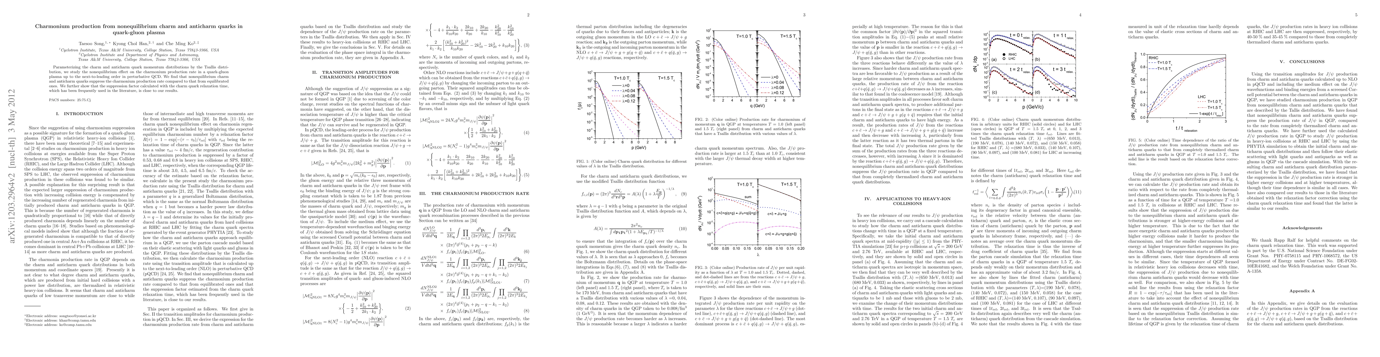 This paper investigates the impact of nonequilibrium charm and anticharm quarks on charmonium production in a quark-gluon plasma using Tsallis distribution parameterization. It finds that nonequilibrium effects suppress the charmonium production rate compared to equilibrated quarks, with the suppression factor closely matching previous results using the charm quark relaxation time.