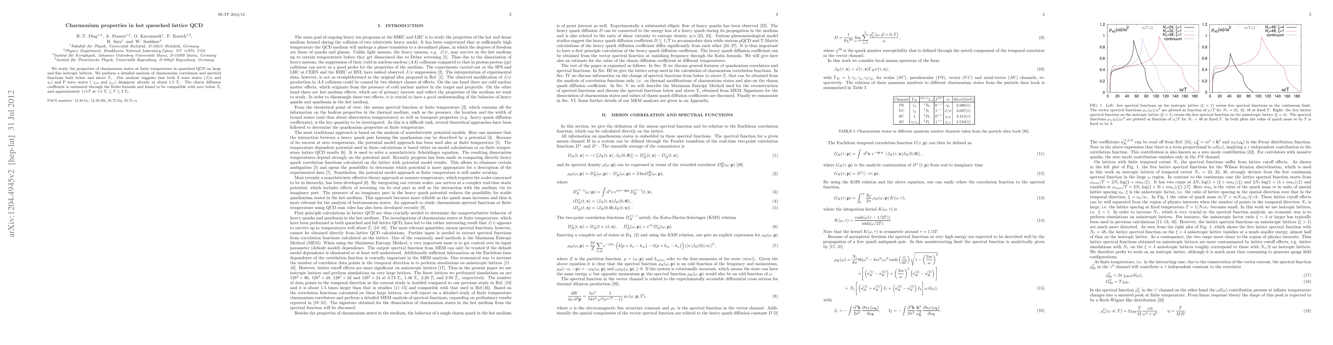 This study investigates charmonium states in hot quenched lattice QCD, revealing that both S and P wave states vanish at around $1.5 T_c$. The charm diffusion coefficient is found to be zero below $T_c$ and approximately $1/\pi T$ in the range $1.5 T_c \lesssim T \lesssim 3 T_c$.