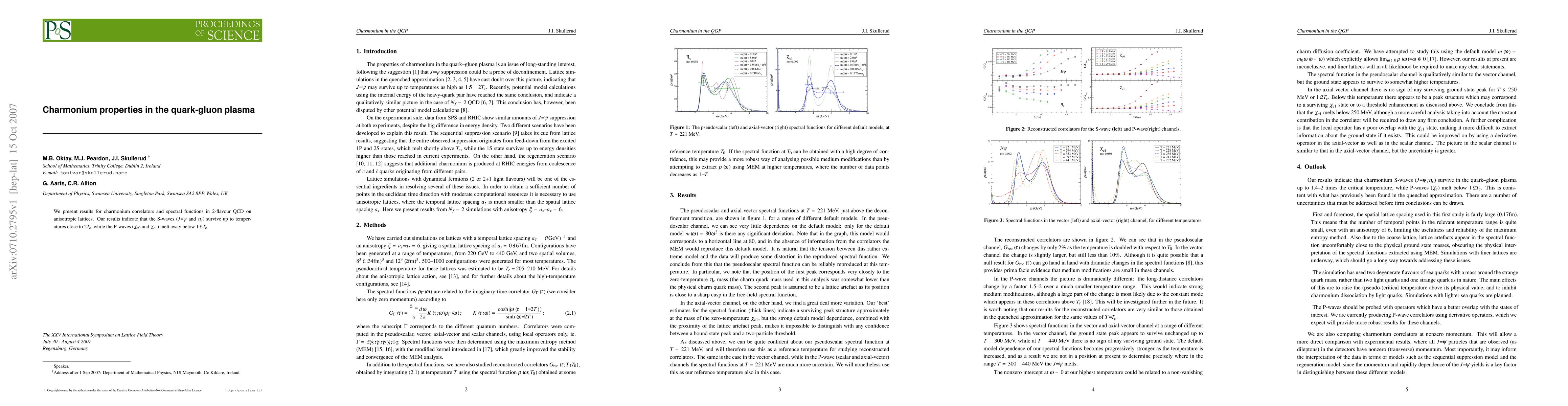 We present results for charmonium correlators and spectral functions in 2-flavour CD on anisotropic lattices. Our results indicate that the S-waves (J/psi and eta_c) survive up to temperatures close to 2T_c, while the P-waves (chi_c0 and chi_c1) melt away below 1.2T_c.