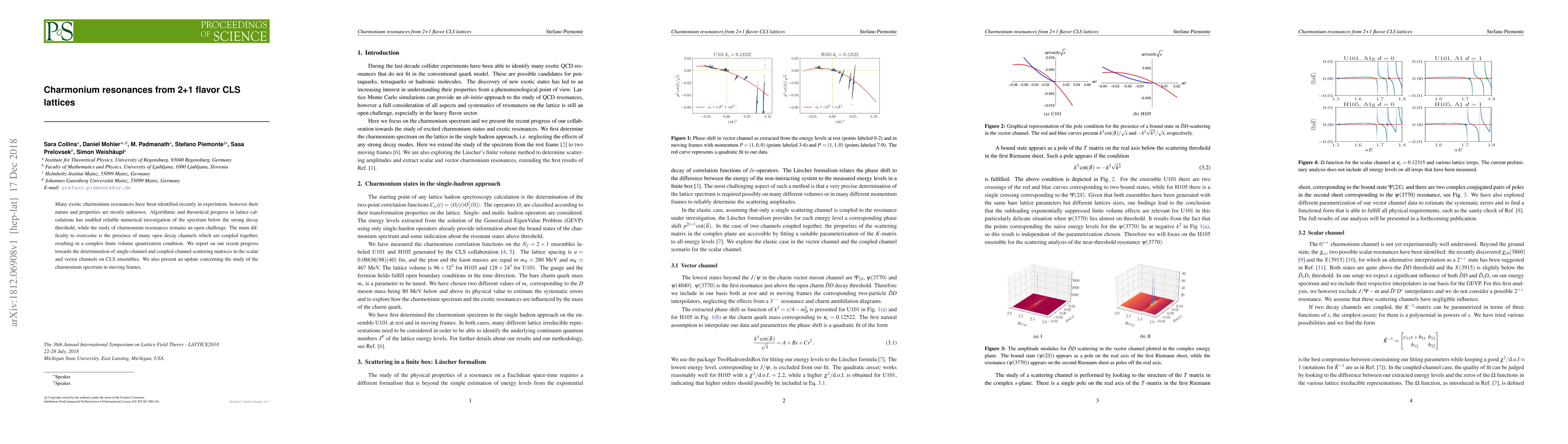 Many exotic charmonium resonances have been identified recently in experiment, however their nature and properties are mostly unknown. Algorithmic and theoretical progress in lattice calculations has enabled reliable numerical investigation of the spectrum below the strong decay threshold, while the study of charmonium resonances remains an open challenge. The main difficulty to overcome is the presence of many open decay channels which are coupled together, resulting in a complex finite volume quantization condition. We report on our recent progress towards the determination of single-channel and coupled-channel scattering matrices in the scalar and vector channels on CLS ensembles. We also present an update concerning the study of the charmonium spectrum in moving frames.