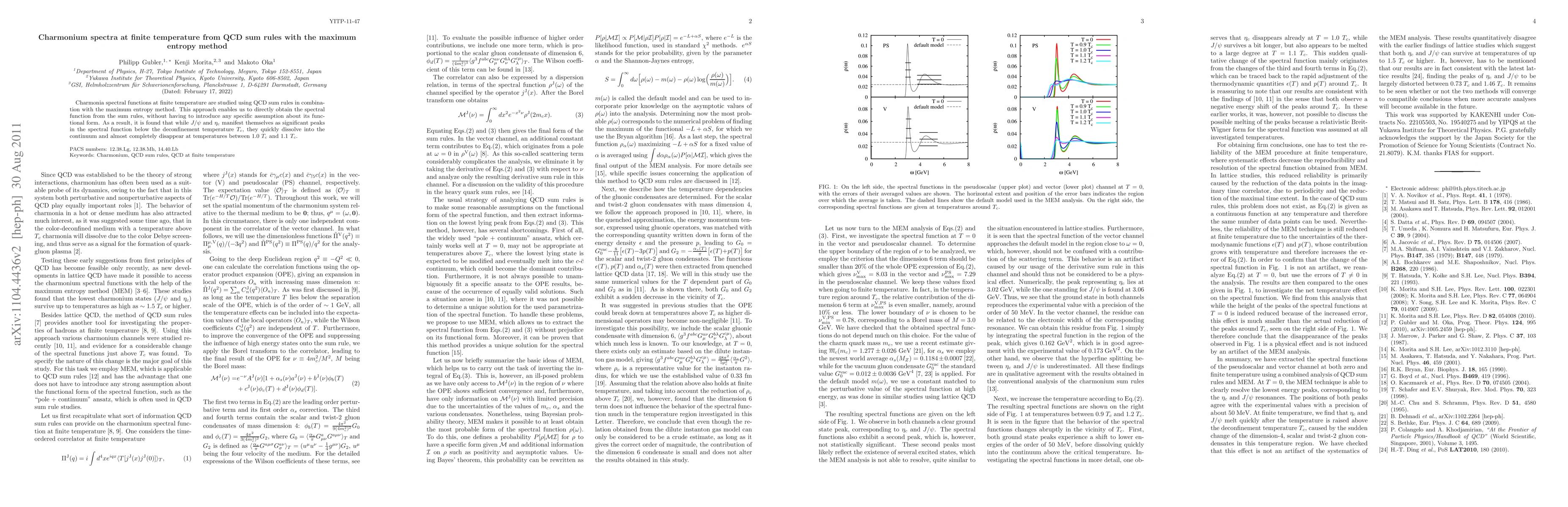 This study uses QCD sum rules and the maximum entropy method to analyze charmonium spectra at finite temperature, revealing that J/psi and eta_c peaks dissolve into the continuum and nearly vanish between 1.0 T_c and 1.1 T_c. The method avoids assumptions about the spectral function's form.