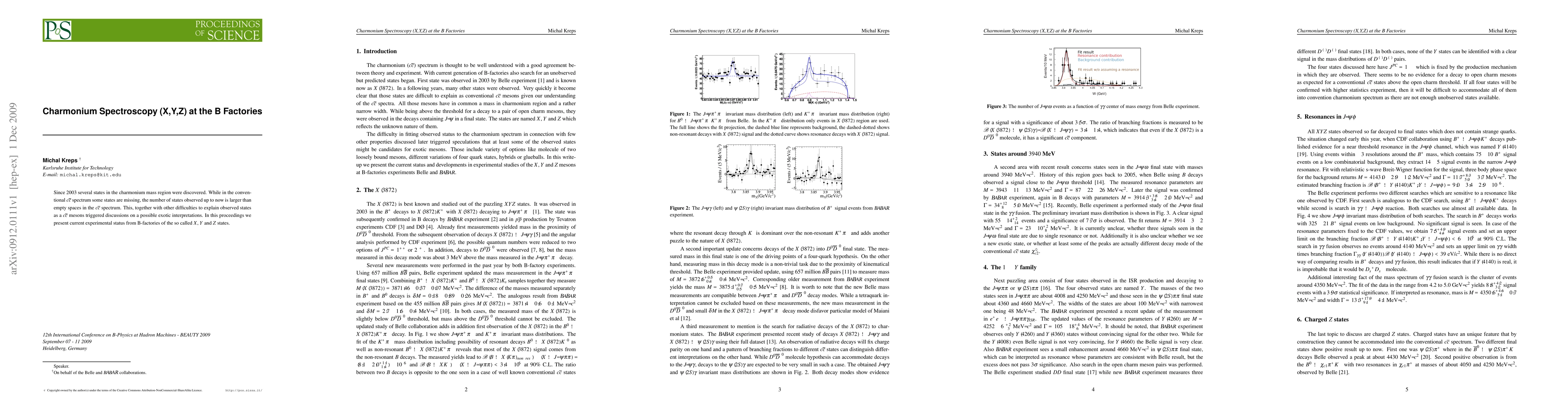 Researchers from B-factories analyzed charmonium states, finding a mix of conventional and exotic interpretations, with some states defying explanation as c c-bar mesons. The study's current experimental status reveals ongoing discussions about the nature of X, Y, and Z states in the charmonium mass region.