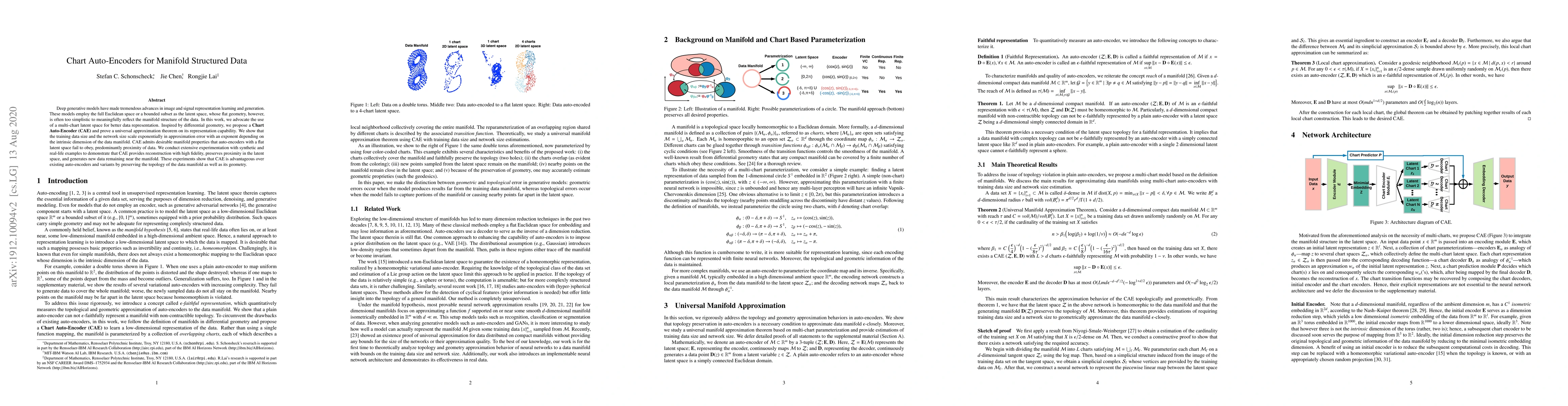 This paper proposes a Chart Auto-Encoder (CAE) to better represent manifold structured data by using a multi-chart latent space. CAE preserves the intrinsic geometry and topology of the data manifold, leading to high-fidelity reconstructions and better data generation.