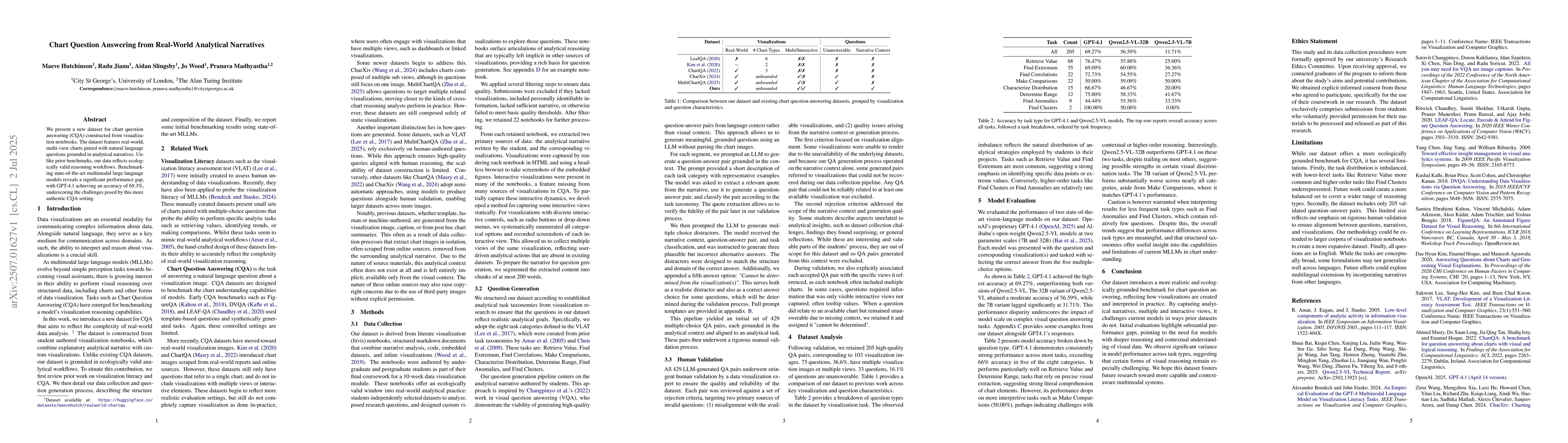 We present a new dataset for chart question answering (CQA) constructed from visualization notebooks. The dataset features real-world, multi-view charts paired with natural language questions grounded in analytical narratives. Unlike prior benchmarks, our data reflects ecologically valid reasoning workflows. Benchmarking state-of-the-art multimodal large language models reveals a significant performance gap, with GPT-4.1 achieving an accuracy of 69.3%, underscoring the challenges posed by this more authentic CQA setting.