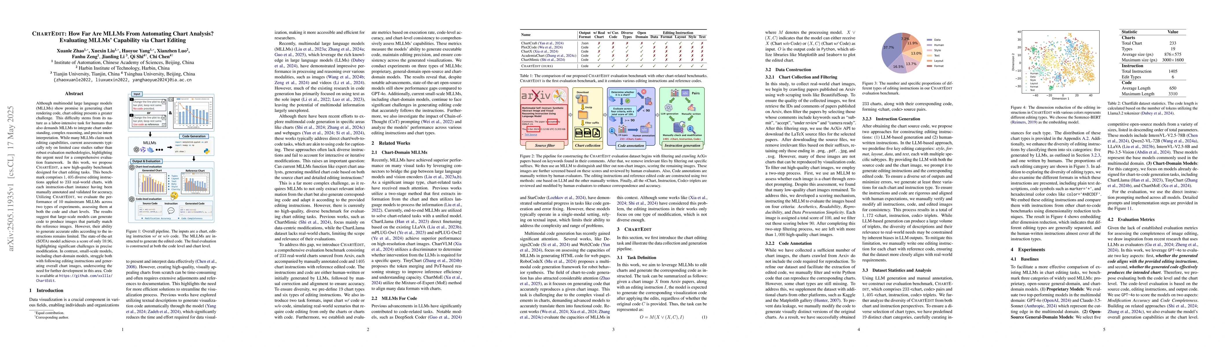 A new benchmark called ChartEdit evaluates the ability of large language models to automate chart analysis and editing, with results showing that while they can generate code for charts, their accuracy remains limited.