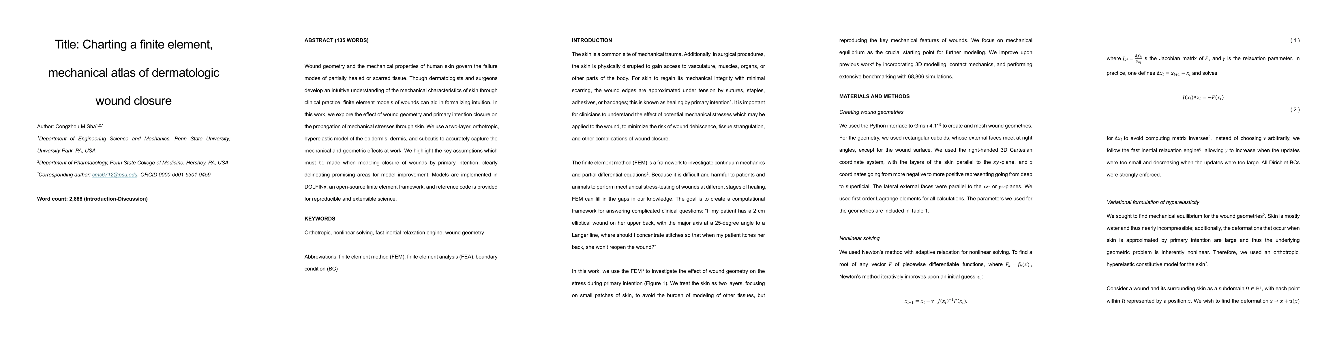 This research develops a finite element model to analyze how wound geometry and skin mechanics influence the failure modes of healed or scarred tissue. The study utilizes a two-layer, orthotropic, hyperelastic model to capture mechanical stresses during wound closure, providing insights into areas for model improvement and offering reference code for reproducibility.