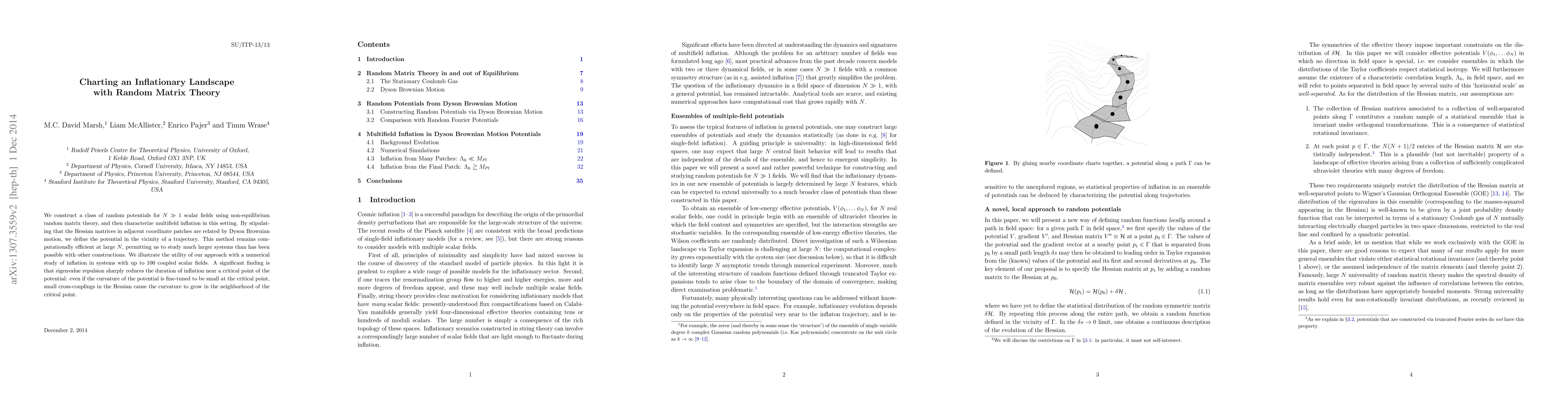 We construct a class of random potentials for N >> 1 scalar fields using non-equilibrium random matrix theory, and then characterize multifield inflation in this setting. By stipulating that the Hessian matrices in adjacent coordinate patches are related by Dyson Brownian motion, we define the potential in the vicinity of a trajectory. This method remains computationally efficient at large N, permitting us to study much larger systems than has been possible with other constructions. We illustrate the utility of our approach with a numerical study of inflation in systems with up to 100 coupled scalar fields. A significant finding is that eigenvalue repulsion sharply reduces the duration of inflation near a critical point of the potential: even if the curvature of the potential is fine-tuned to be small at the critical point, small cross-couplings in the Hessian cause the curvature to grow in the neighborhood of the critical point.