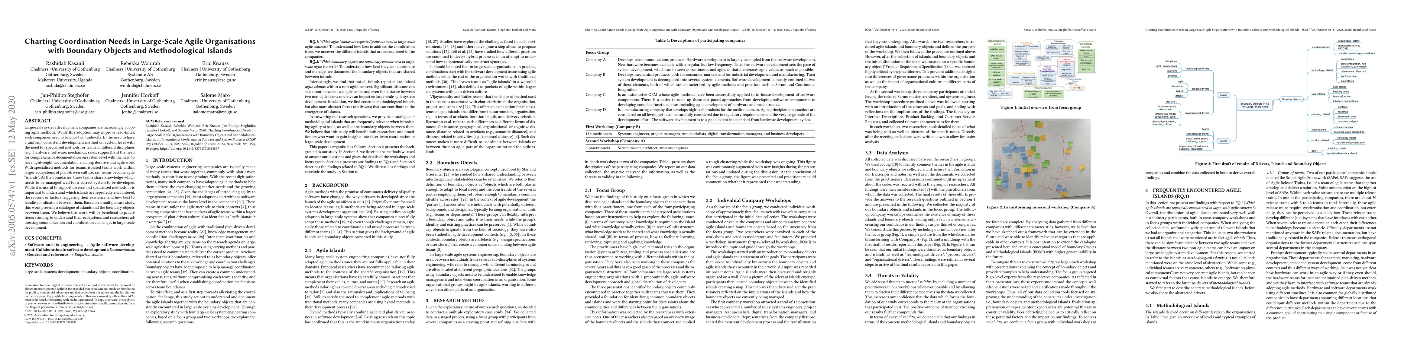 Researchers identified 'methodological islands' in large-scale agile organisations, where teams work with diverse methods, and proposed the use of 'boundary objects' to manage knowledge sharing between them.