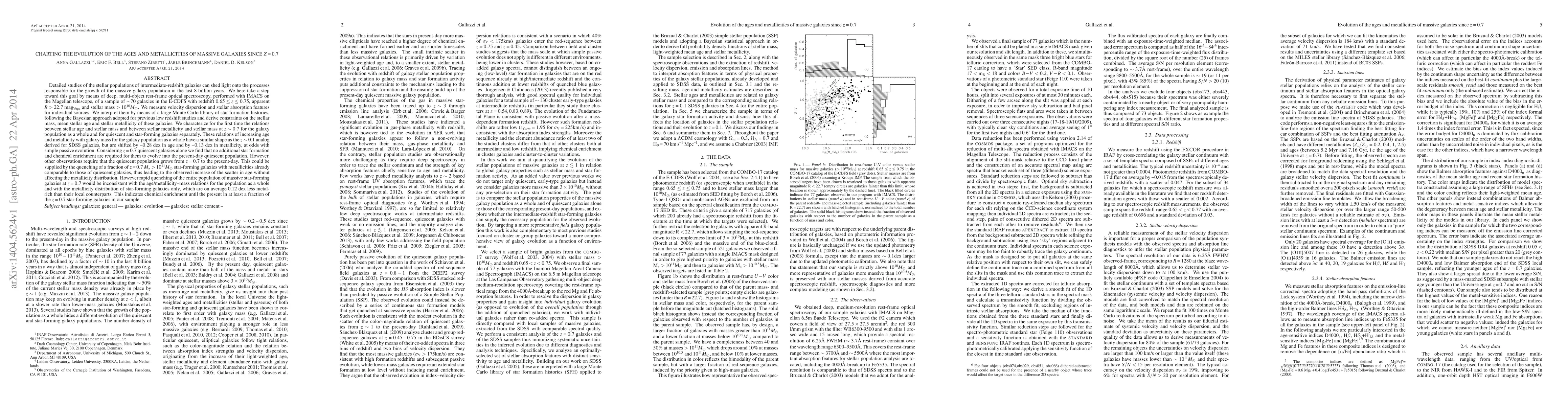 This study uses deep spectroscopy to analyze the stellar populations of massive galaxies at redshift z=0.7, revealing that while quiescent galaxies show little additional star formation, the quenching of a fraction of star-forming galaxies is necessary for the evolution of the present-day population, though some star-forming galaxies continue to chemically enrich over time.
