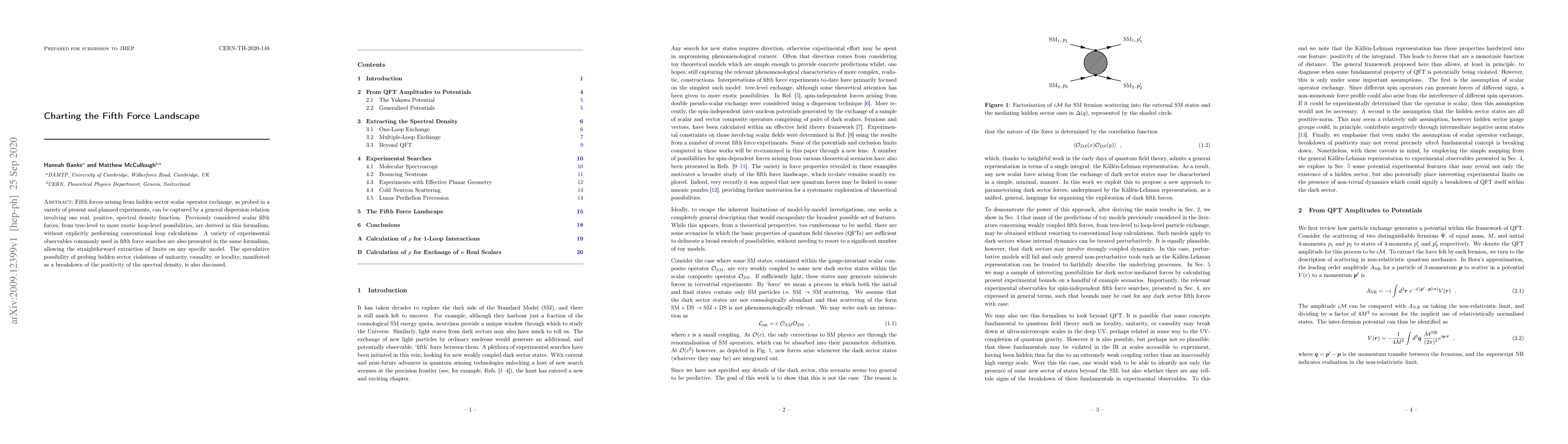 Fifth forces arising from hidden sector scalar operator exchange, as probed in a variety of present and planned experiments, can be captured by a general dispersion relation involving one real, positive, spectral density function. Previously considered scalar fifth forces, from tree-level to more exotic loop-level possibilities, are derived in this formalism, without explicitly performing conventional loop calculations. A variety of experimental observables commonly used in fifth force searches are also presented in the same formalism, allowing the straightforward extraction of limits on any specific model. The speculative possibility of probing hidden sector violations of unitarity, causality, or locality, manifested as a breakdown of the positivity of the spectral density, is also discussed.