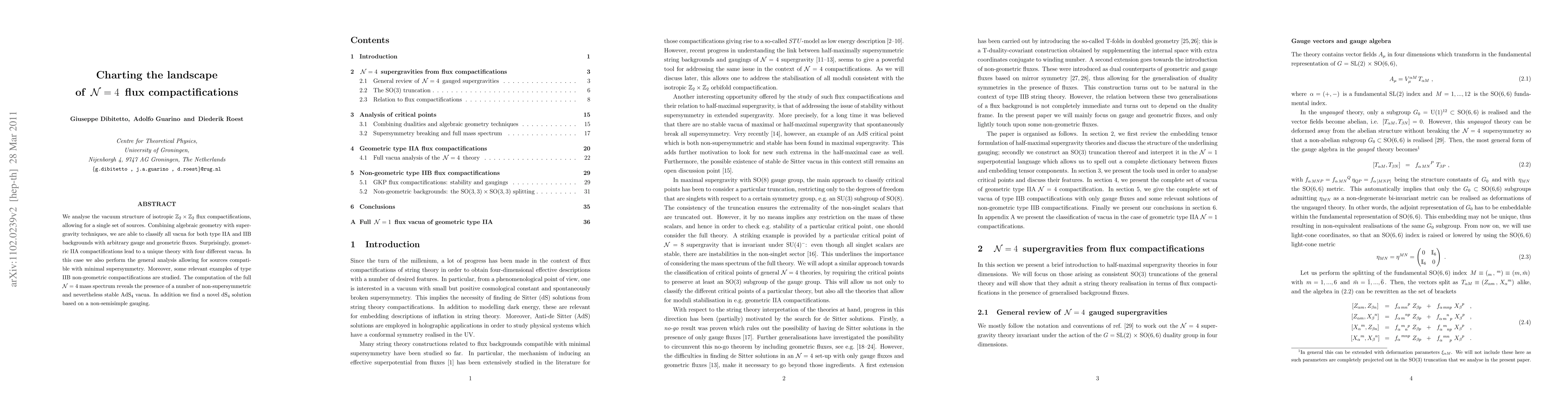 We analyse the vacuum structure of isotropic Z_2 x Z_2 flux compactifications, allowing for a single set of sources. Combining algebraic geometry with supergravity techniques, we are able to classify all vacua for both type IIA and IIB backgrounds with arbitrary gauge and geometric fluxes. Surprisingly, geometric IIA compactifications lead to a unique theory with four different vacua. In this case we also perform the general analysis allowing for sources compatible with minimal supersymmetry. Moreover, some relevant examples of type IIB non-geometric compactifications are studied. The computation of the full N=4 mass spectrum reveals the presence of a number of non-supersymmetric and nevertheless stable AdS_4 vacua. In addition we find a novel dS_4 solution based on a non-semisimple gauging.