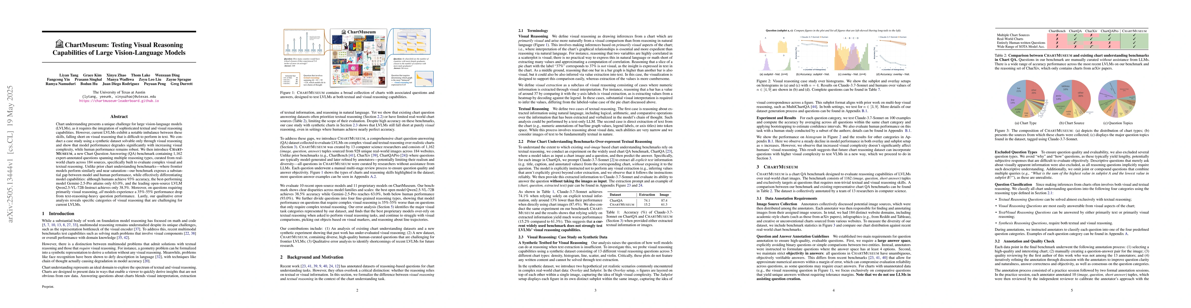 ChartMuseum, a Chart QA benchmark with 1,162 expert-annotated questions, designed to evaluate complex visual and textual reasoning, exposing the performance gap between current LVLMs and human capabilities.