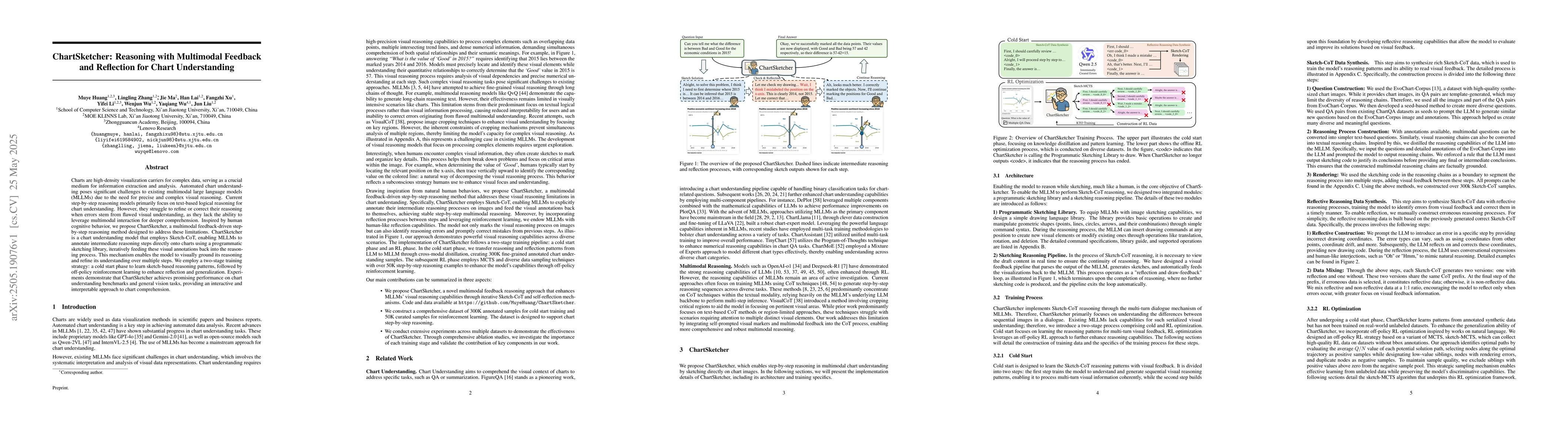 ChartSketcher, a new chart understanding model, uses multimodal feedback to refine its reasoning and achieve promising performance on chart comprehension tasks.