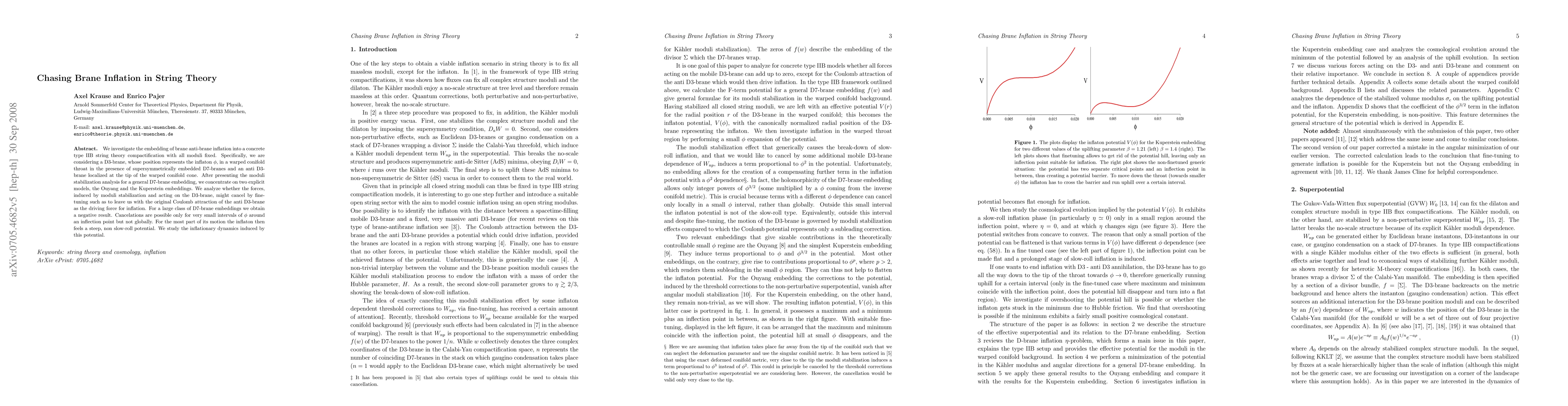 Researchers investigate the possibility of brane inflation in string theory, finding that a large class of D7-brane embeddings do not allow for fine-tuning to cancel forces, resulting in a steep non-slow-roll potential driving inflation.