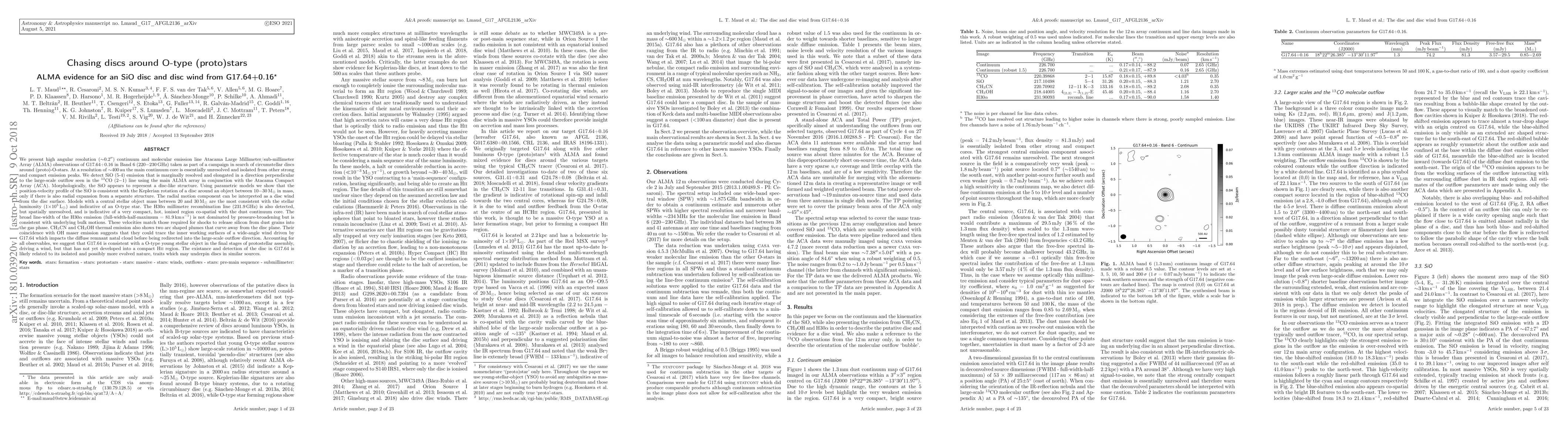 The research utilizing ALMA observations identifies an SiO disc and potential disc wind around the massive young stellar object G17.64+0.16, suggesting it's in the final stages of protostellar assembly, driven by an O-type star but not yet a compact HII region. The disc's existence may be linked to its isolated, evolved nature, potentially relevant to similar sources.