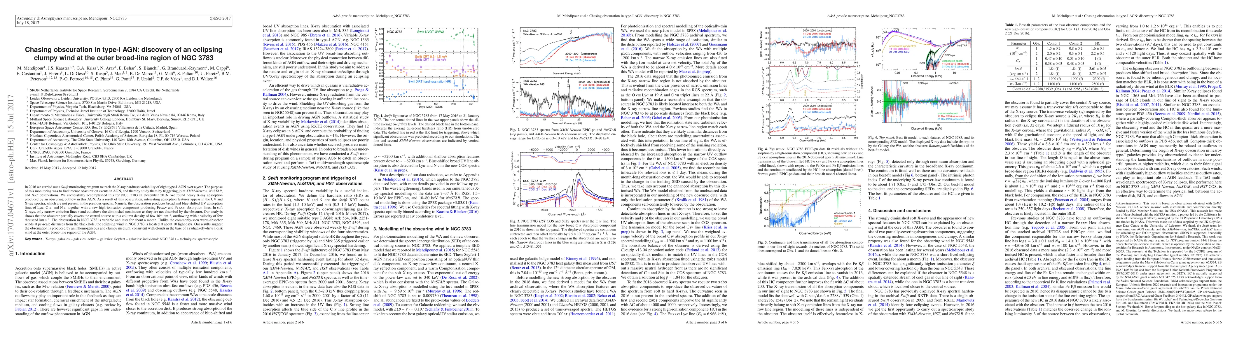 In 2016 we carried out a Swift monitoring program to track the X-ray hardness variability of eight type-I AGN over a year. The purpose of this monitoring was to find intense obscuration events in AGN, and thereby study them by triggering joint XMM-Newton, NuSTAR, and HST observations. We successfully accomplished this for NGC 3783 in December 2016. We found heavy X-ray absorption produced by an obscuring outflow in this AGN. As a result of this obscuration, interesting absorption features appear in the UV and X-ray spectra, which are not present in the previous epochs. Namely, the obscuration produces broad and blue-shifted UV absorption lines of Ly$\alpha$, C IV, and N V, together with a new high-ionisation component producing Fe XXV and Fe XXVI absorption lines. In soft X-rays, only narrow emission lines stand out above the diminished continuum as they are not absorbed by the obscurer. Our analysis shows that the obscurer partially covers the central source with a column density of few $10^{23}$ cm$^{-2}$, outflowing with a velocity of few thousand km s$^{-1}$. The obscuration in NGC 3783 is variable and lasts for about a month. Unlike the commonly-seen warm-absorber winds at pc-scale distances from the black hole, the eclipsing wind in NGC 3783 is located at about 10 light days. Our results suggest the obscuration is produced by an inhomogeneous and clumpy medium, consistent with clouds in the base of a radiatively-driven disk wind at the outer broad-line region of the AGN.