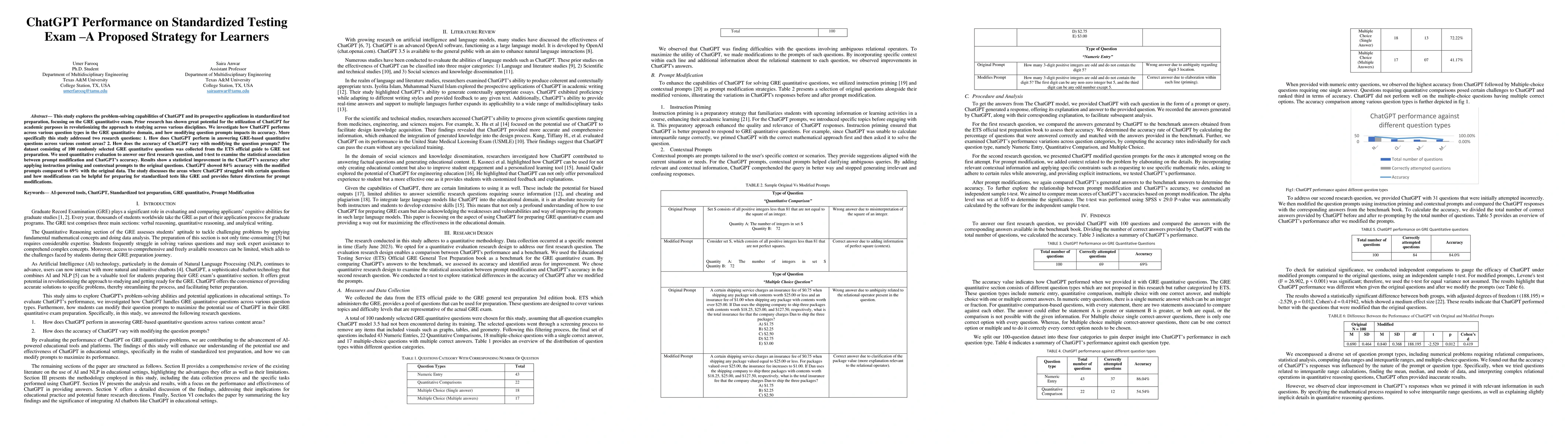 This study evaluates the performance of ChatGPT on GRE quantitative questions, finding that modified prompts significantly improve accuracy from 69% to 84%. The research highlights the potential of tailored prompts to enhance standardized test preparation strategies.