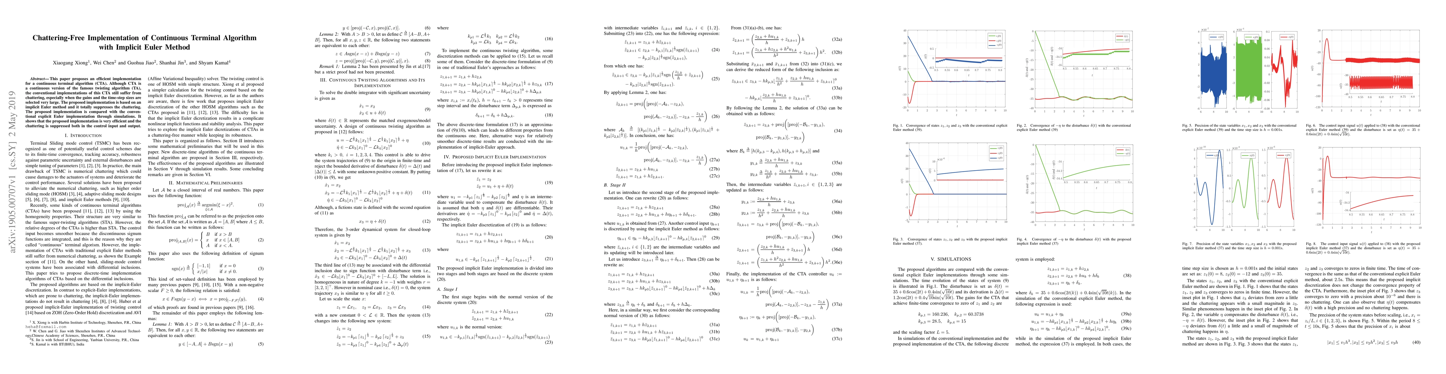 This paper proposes an efficient implementation for a continuous terminal algorithm (CTA). Although CTA is a continuous version of the famous twisting algorithm (TA), the conventional implementations of this CTA still suffer from chattering, especially when the gains and the time-step sizes are selected very large. The proposed implementation is based on an implicit Euler method and it totally suppresses the chattering. The proposed implementation is compared with the conventional explicit Euler implementation through simulations. It shows that the proposed implementation is very efficient and the chattering is suppressed both in the control input and output.