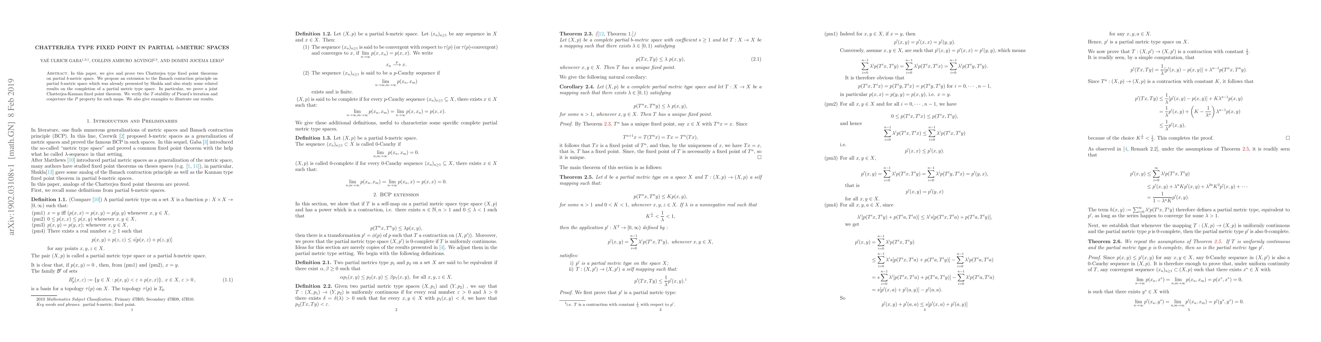 In this paper, we give and prove two Chatterjea type fixed point theorems on partial $b$-metric space. We propose an extension to the Banach contraction principle on partial $b$-metric space which was already presented by Shukla and also study some related results on the completion of a partial metric type space. In particular, we prove a joint Chatterjea-Kannan fixed point theorem. We verify the $T$-stability of Picard's iteration and conjecture the $P$ property for such maps. We also give examples to illustrate our results.