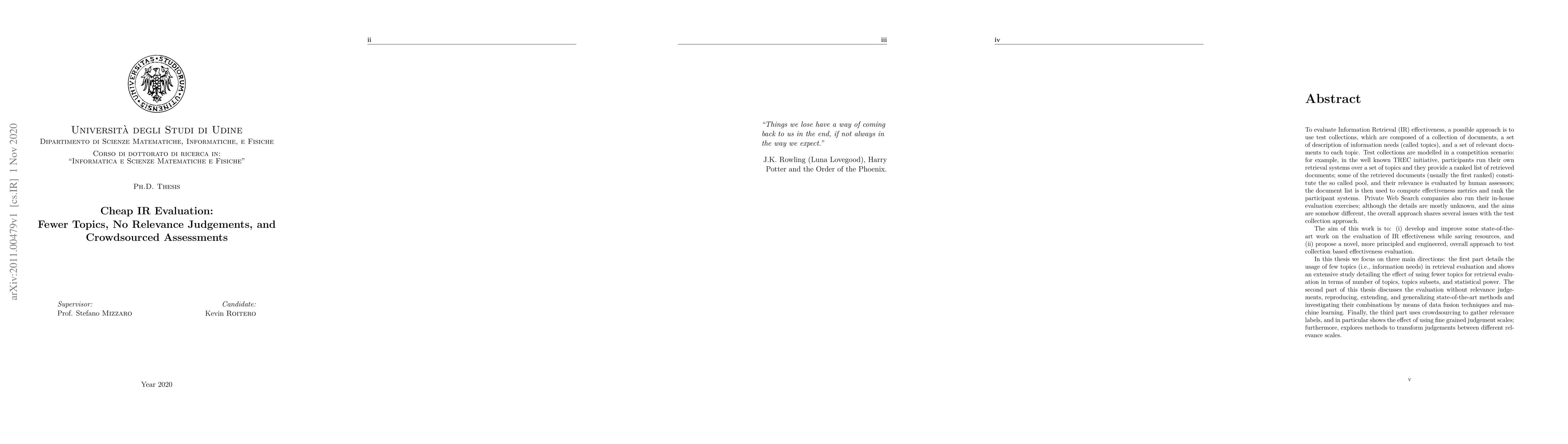 Researchers developed a cheaper alternative to traditional IR evaluation methods by using fewer topics, no relevance judgments, and crowdsourced assessments. This approach aims to save resources while maintaining effectiveness metrics for evaluating information retrieval systems.
