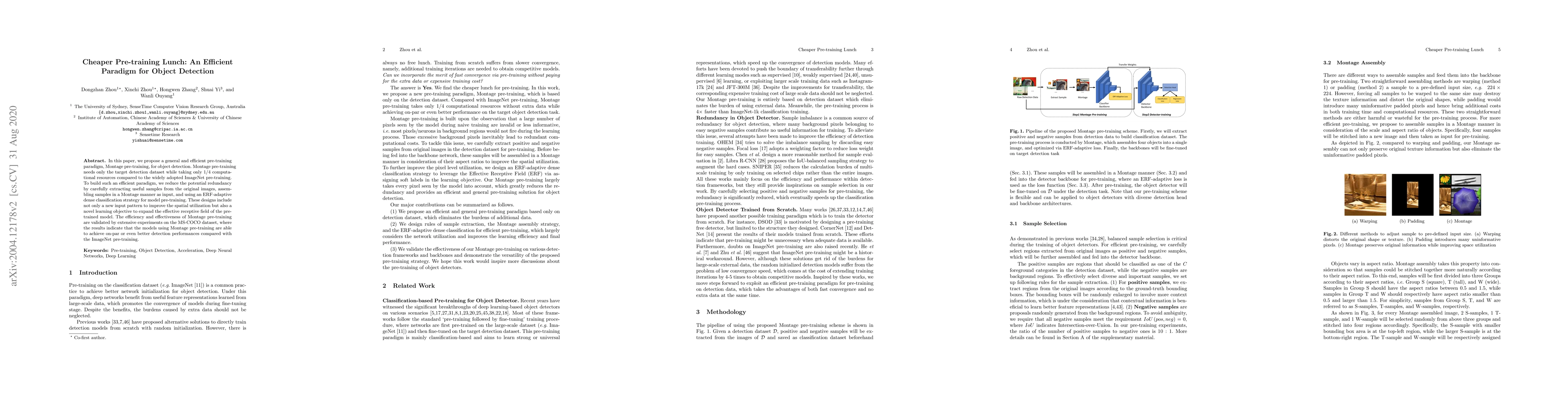 A new pre-training paradigm called Montage pre-training reduces computational resources for object detection while maintaining effectiveness, achieving on-par or better performance than ImageNet pre-training in extensive experiments.